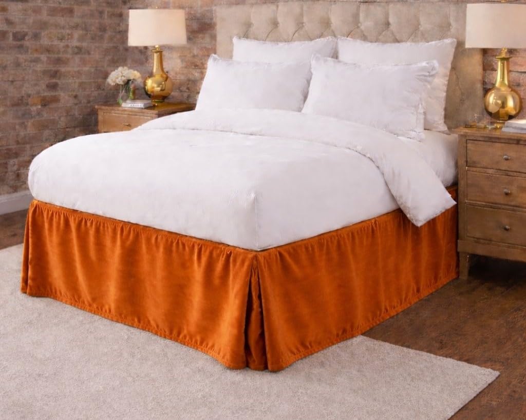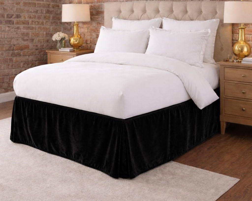 Dimpy Bedding Luxury Velvet Box Plated Bed Skirt is a three-sided skirt beautifully crafted and durable. This luxurious bed skirt is the perfect addition to your bedroom set. Our elegant Tailored design is great for completing a bedroom set as well as concealing items stored under your bed. Luxurious Fabric Velvet Box Pleated Bed Skirt Bed Skirt Dust Ruffle with Split Corners Soft and Easy Care Velvet Bedskirt