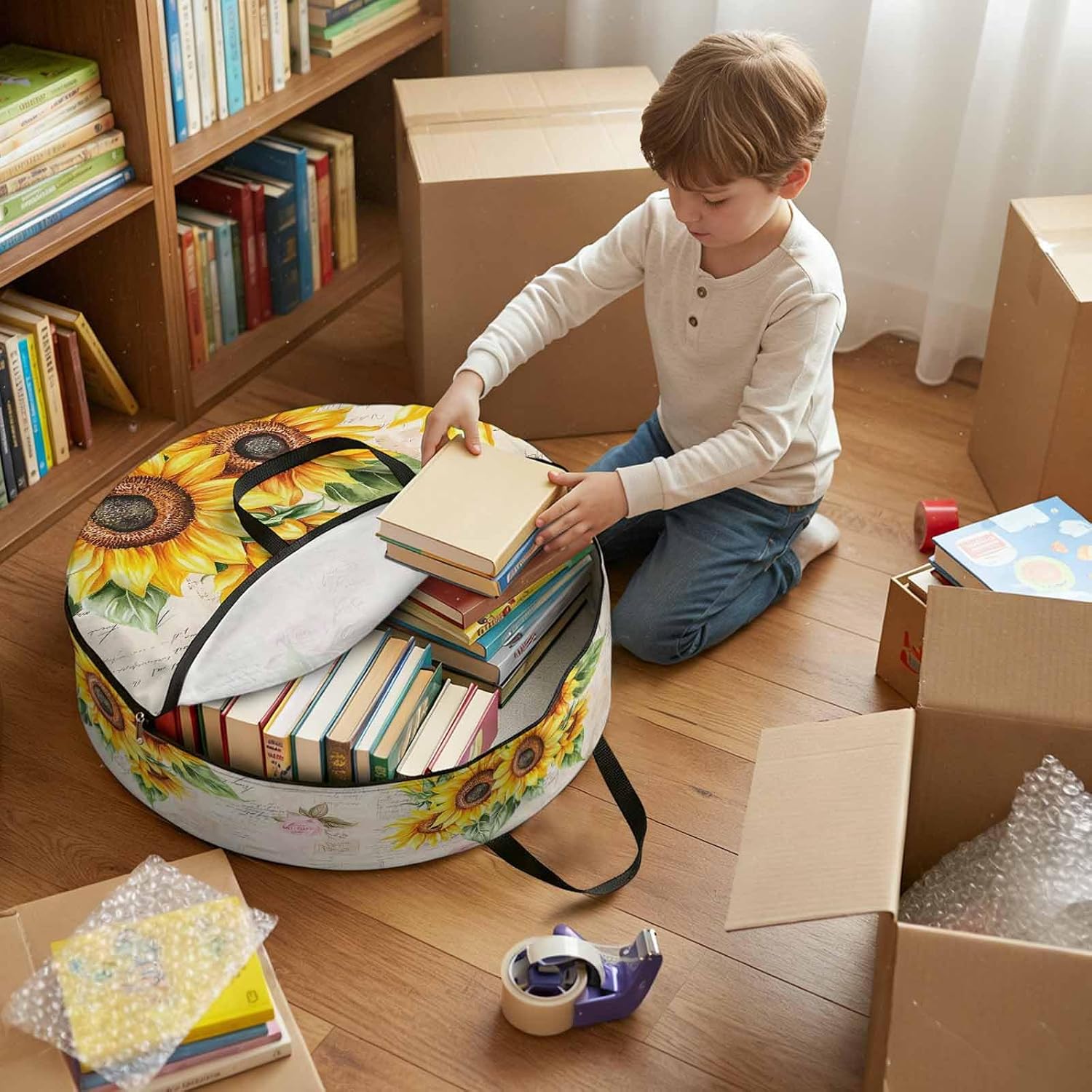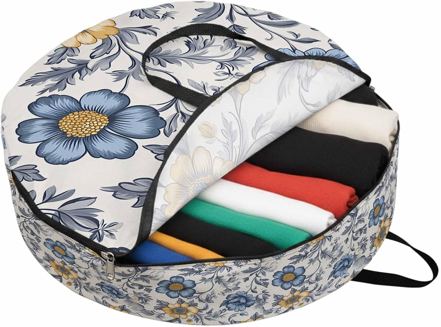 Reclaim Your Closet Space with the Round Storage Solution! Material: polyester Diameters: 24 inch, 30 inch, 36 inch Depth: 7 inches Package Includes: Round Storage Bag One Bag, Endless Possibilities: Whether you are swapping out your summer wardrobe, moving into a new dorm, or packing away holiday decorations, this bag has you covered. The circular design is uniquely suited for: Bedding: Comforters, quilts, sheet sets, and oversized pillows. Clothing: Winter coats, sweaters, and bulky ski gear. Home Decor: Holiday wreaths, garlands, and floral arrangements. Outdoor Gear: Camping blankets, sleeping bags, and beach towels. Dual Zippers: The high quality double zipper design allows the closet organizer to open wide from both sides, making it effortless to load and unload even the bulkiest comforters or wreaths. Reinforced Handles: Sturdy, reinforced handles are securely stitched to provide extra strength and a comfortable grip when carrying heavy loads or pulling the bag from under a bed. Clear Label Pocket: A transparent built-in label holder allows you to quickly identify the contents of each bag without ever having to unzip it, keeping your storage perfectly organized.