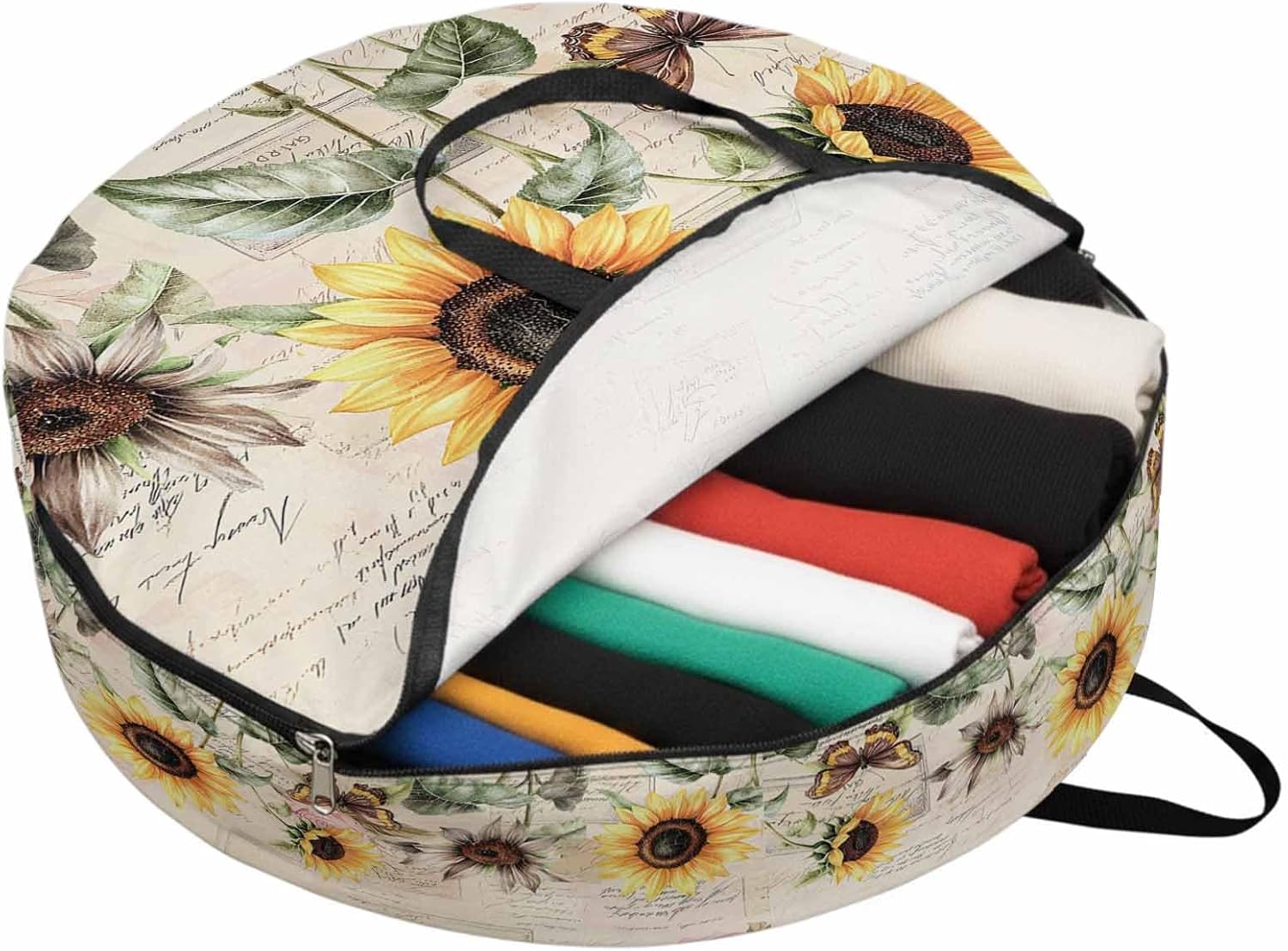 Reclaim Your Closet Space with the Round Storage Solution! Material: polyester Diameters: 24 inch, 30 inch, 36 inch Depth: 7 inches Package Includes: Round Storage Bag One Bag, Endless Possibilities: Whether you are swapping out your summer wardrobe, moving into a new dorm, or packing away holiday decorations, this bag has you covered. The circular design is uniquely suited for: Bedding: Comforters, quilts, sheet sets, and oversized pillows. Clothing: Winter coats, sweaters, and bulky ski gear. Home Decor: Holiday wreaths, garlands, and floral arrangements. Outdoor Gear: Camping blankets, sleeping bags, and beach towels. Dual Zippers: The high quality double zipper design allows the closet organizer to open wide from both sides, making it effortless to load and unload even the bulkiest comforters or wreaths. Reinforced Handles: Sturdy, reinforced handles are securely stitched to provide extra strength and a comfortable grip when carrying heavy loads or pulling the bag from under a bed. Clear Label Pocket: A transparent built-in label holder allows you to quickly identify the contents of each bag without ever having to unzip it, keeping your storage perfectly organized.