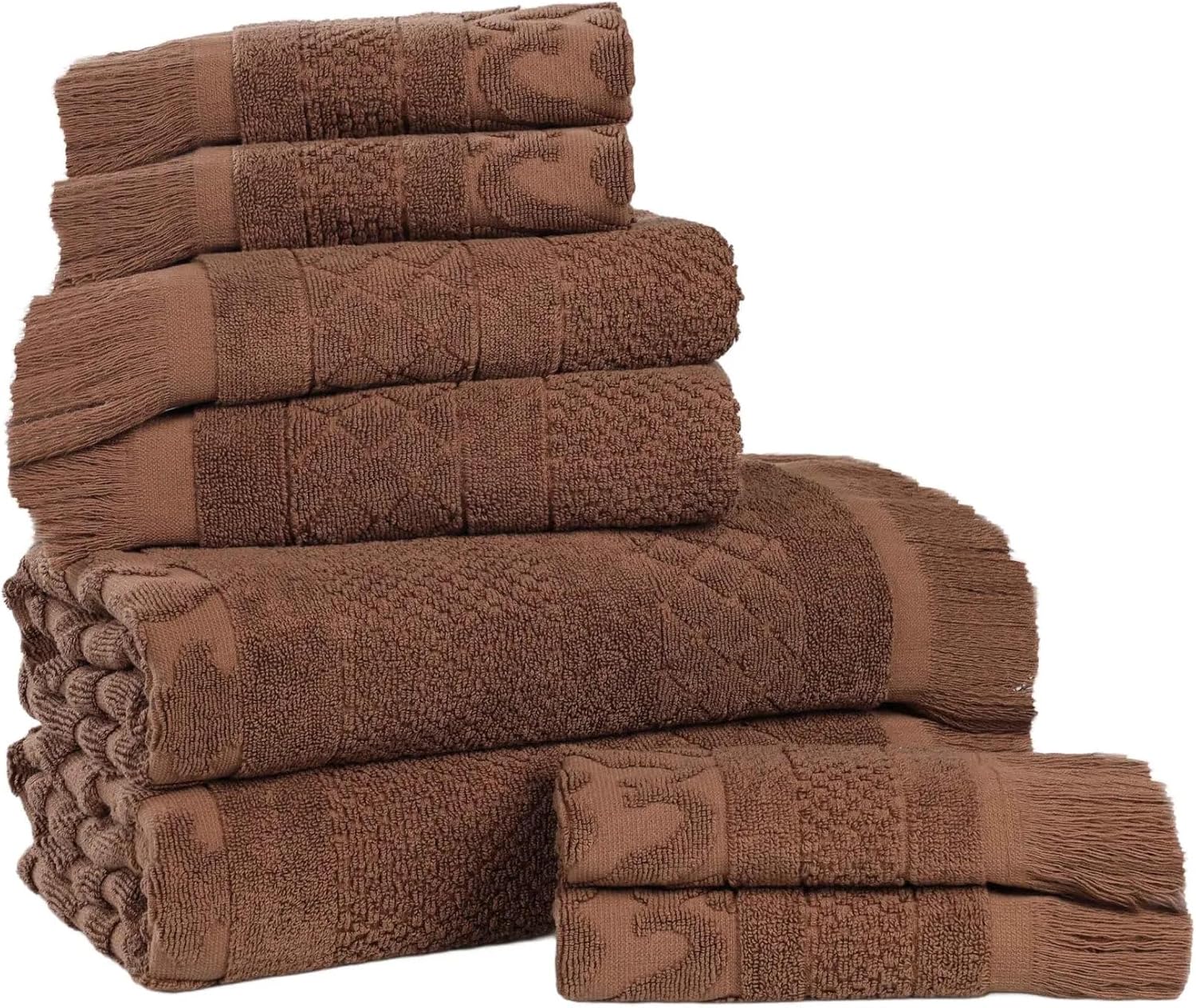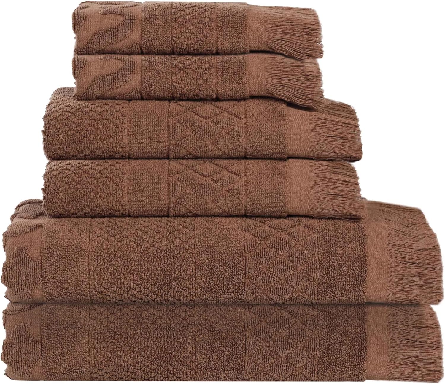 Immerse yourself in ultimate serenity with the Superior Rolla Cotton Geometric Jacquard Plush Soft Absorbent Bath Towel Set of 3. These Cotton towels are crafted for a soft, absorbent, and luxurious experience. Boasting a geometric pattern with frayed edges, brings a unique style to your guest or master bathroom with this bundle. Each towel is finished with a durable single-ply to withstand countless washes and last you years to come. Featuring a hanging loop on each piece, enjoy both convenience and comfort with this versatile set.Product Specification:The set includes: 3 Bath Towels.Material: 100% CottonStyle: Pairs with Modern, Casual, Traditional, or Transitional bathroom decor styles.Additional Features: Cotton towels are made from high-quality, long, and soft fibers for a luxurious feel and impressive absorbency. Naturally eco-friendly, these towels are crafted from renewable resources that require less water; an attached hanging loop allows you to hang your towel easily.OEKO-TEX Certified: We're committed to making products safer for you and safer for the world; STANDARD 100 by OEKO-TEX certified; Every component of this product has been tested and verified free of harmful substances and produced sustainably.Easy Maintenance: Our towels are easy to care for and machine washable. For the most luxurious results, we recommend washing towels separately with like colors. Please refrain from using bleach or other harmful chemicals.DimensionsBath Towel: 30" wide x 54" long.