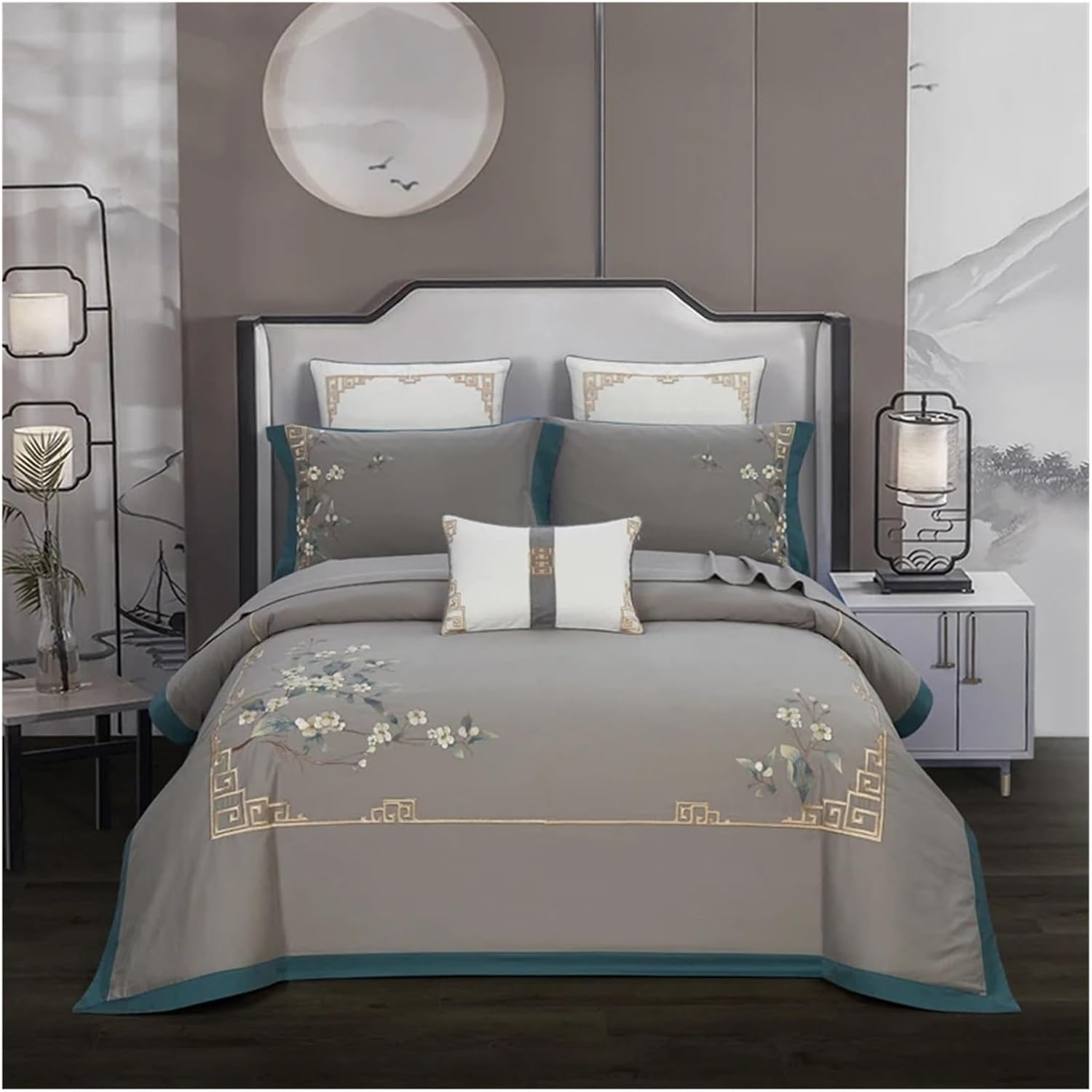 Queen size 200X230cm 4pcs1 pcs duvet cover:200*230cm (78.7*90.6 inch );1 pcs flat bed sheet:245*250cm (96.5*98.4 inch);2 pcs pillowcase:48*74cm (18.9*29.1 inch);King size 220X240cm 4pcs1 piece Duvet Cover: 220*240cm(87*94inches)1 piece Bedsheet:245*270(96*106inches)2 pieces Pillowcases:48*74cm(19*30inches)