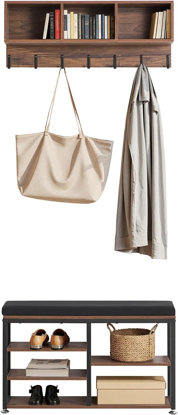 | Item Type Name | 3-in-1 Shoe Coat Rack Combo Set with Hooks and Bookshelf, Steel Frame Hall Tree Entrance Storage Organizer Holder for Entry, Bedroom, Closet, Office, Rustic Brown |
