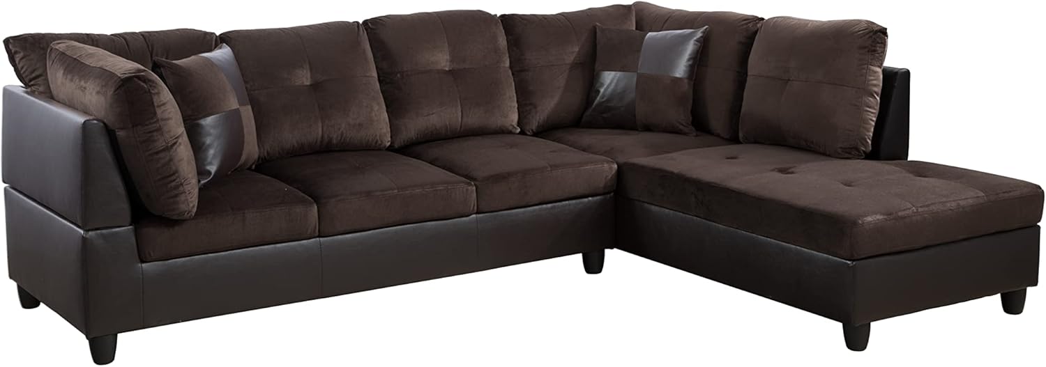 The favoured choice for your living room, reading room, meeting room 🔔DESCRIPTION ☆Bold and beautiful describe this 3-piece Sectional with Ottoman that features plush and spacious seating. ☆It also features perfect solid color on both the sectional and matching ottoman. ☆Make a statement in your home living space. Ottoman can make for extra storage. ☆You can quickly assemble the item and use it in an easy-to-understand manual. ☆Perfect for living room,meeting room, hotel, bedroom, office, home theatre and other place. 🔔FEATURE ①Microfiber&Leather Matching,Tufted Design ②High Density Sponge ③Pocket Coil Spring Seat ④Solid Wood Frame ⑤Removable Back Cushion ⑥Strong Foot Support Structure ⑦Durable and Easy to Clean ⑧Weight Capacity: 750-850 lb 🔔Package Box1: 74.5x32x12.5in, 92lbBox2: 71x32x12.5in, 88lb Box3: 34x32x12.5in, 37lb🔔WHAT'S INCLUDED? Sofa Chaise Ottoman2 Toss Pillows