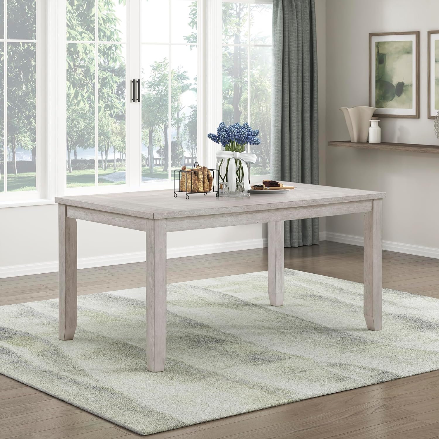 Bring comfort, style, and farmhouse charm into your home with this upholstered dining bench, crafted with a wood frame in a brushed antique white finish and topped with a soft textured fabric seat. Designed to seat multiple guests comfortably, it combines rustic elegance with modern functionality. The bench's cushioned top offers inviting comfort, while the sturdy wooden construction ensures reliable support for everyday use. Perfect for dining rooms, kitchens, or entryways, this piece blends seamlessly into any decor style-offering a timeless look that enhances the beauty and coziness of your space.