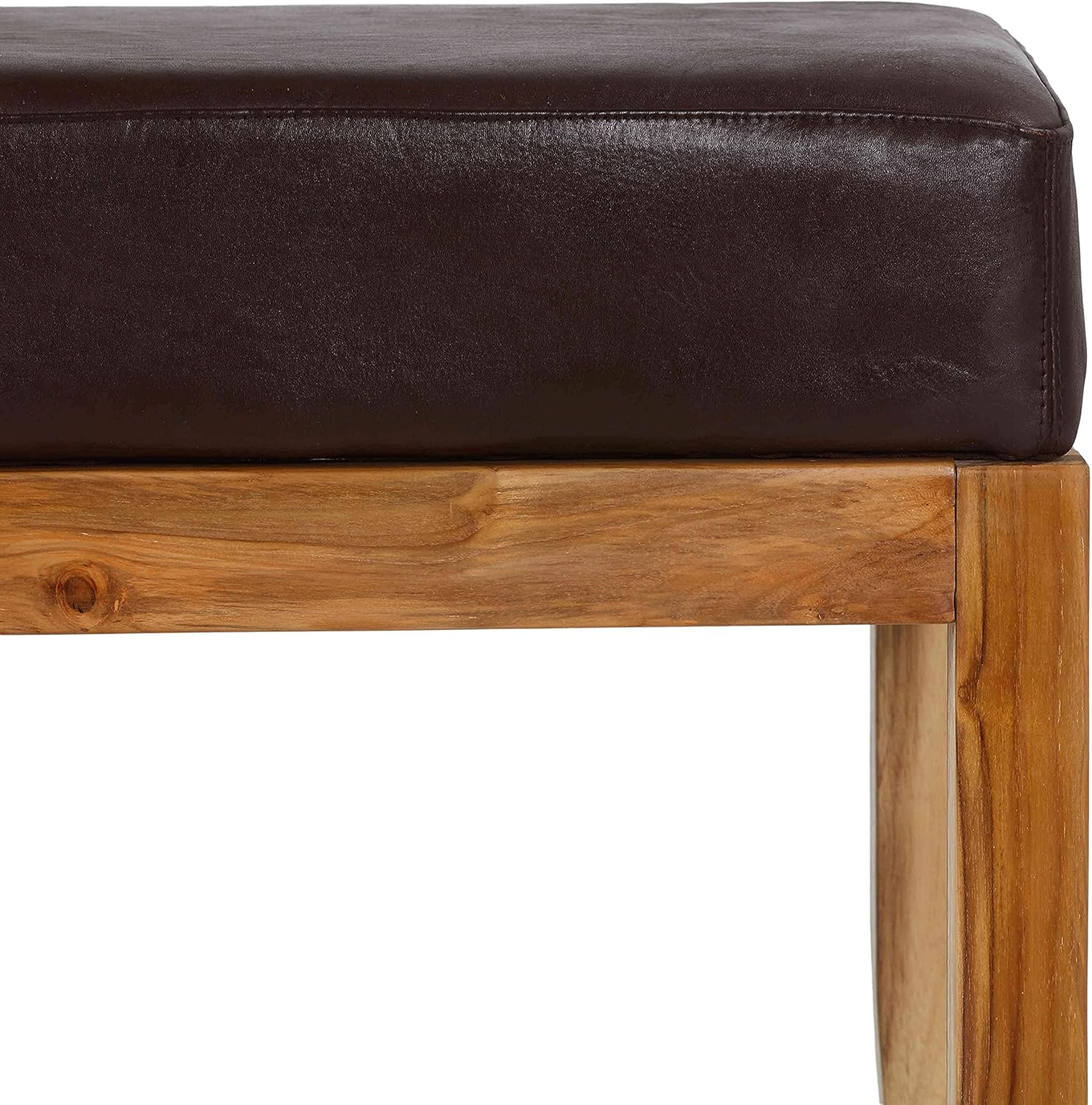 Enjoy the decorative combination of sophisticated rustic style and function with this charming bench ottoman. Upholstered in genuine leather and supported by solid wood legs, the Bare Decor Luisa Genuine Leather Ottoman is as durable as it is stylish. Due to the natural leather material, slight variations that enhance the piece's character should be expected.