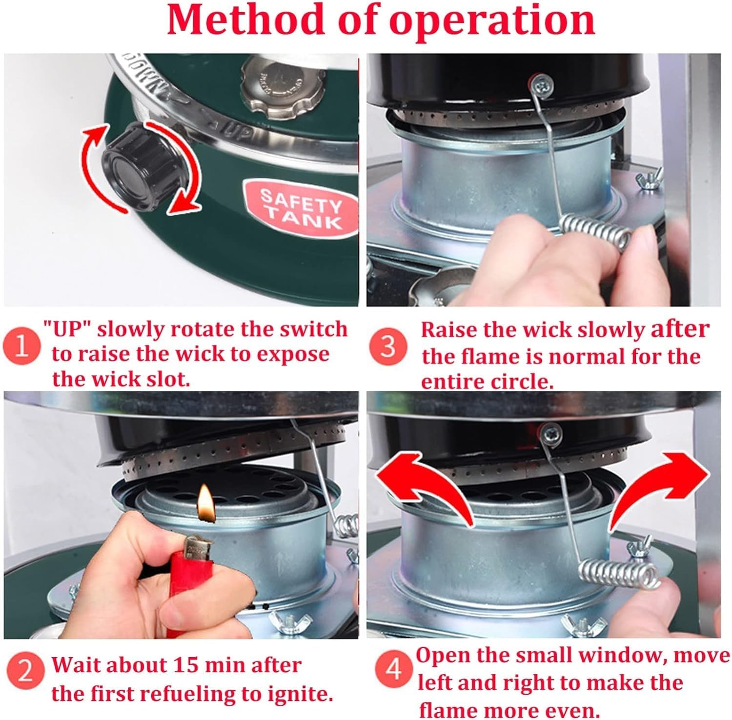 Name: Kerosene furnaceFeatures of the heater: Portable, mobile heater, smokeless, energy-saving, and silent.Heater material: aluminum alloy/anodized/stainless steelHeater oil volume: 6 LOil consumption of petroleum heater: 0.2~0.25 liters/hourHeater thermal output: maximum 9000 BTU/HCamping heater heating area: approximately 20 square metersNet weight: 4.9kgTotal weight of kerosene furnace: 5.5 kgProduct specification: 32.5CM * 32.5CM * 47CMKerosene furnace packing list: heating furnace × 1. Spare cotton core × 1. Oil extractor × 1. Funnel × 1. Storage bag: 6 L (black and green bags are random).Attention: This product cannot be used in a closed environment (or ventilated after a period of use)If you have any questions, please feel free to consult our customer service, we will answer for you