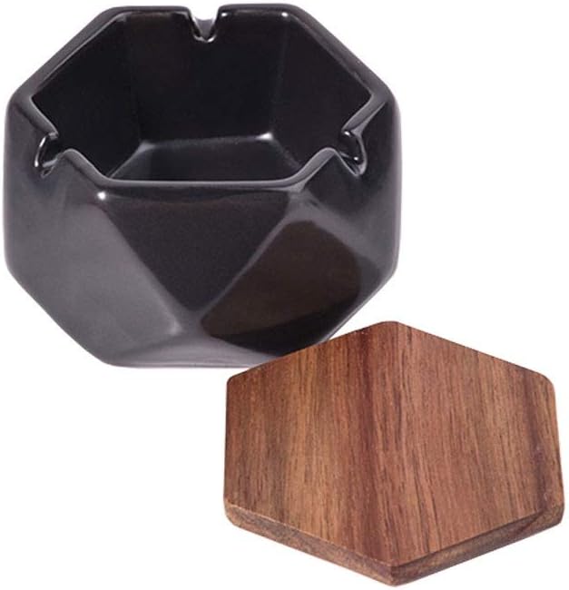 Perfectly retains ash and cigarette butts and reduces odor, keep the table clean and smooth, and make your mood pleasant.Product name: AshtrayProduct material: ceramic + woodProduct size: ABC is approximately 3.93 inches long, 3.93 inches wide, and 1.57 inches high. The diameter of DEF is about 3.93 inches and the height is about 2.08 inches.Applicable scenarios: outdoor, garden, indoor, living room, desktop, coffee table, family, bedroom, study, office, etc.prompt:1. Due to the different light and shooting angle, there may be slight chromatic aberration, please understand.2. This ashtray is an ashtray with a lid.