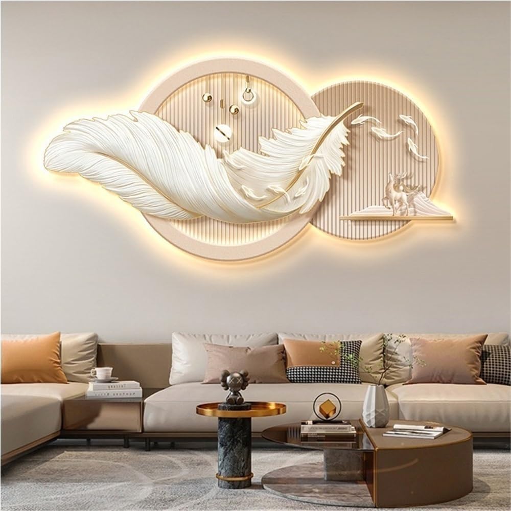 Note:1. We measure manually, there may be an error of 0.4-1.2 inches, please refer to the actual product.2. The painting adopts a flat design, but creates a three-dimensional visual effect.3. The LED light is behind the painting, and the light seen in the image is part of the printed pattern itself. Thank you for your understanding!Bring sophistication and depth to your walls with our modern LED wall decor with 3D visual effects. This beautiful piece features a flat layout design that mimics a 3D illusion, giving it a dynamic sense of depth and realism - the feather pattern appears to float on the wall. Built-in soft LED lighting creates a warm, flicker-free glow that is energy-efficient and eye-friendly while enhancing the vision center of the artwork.This versatile illuminated wall decor is suitable for both home and commercial spaces, including living rooms, restaurants, offices, hotels, and bars. The modern feather pattern complements a variety of interior design styles, from minimalist to luxurious.