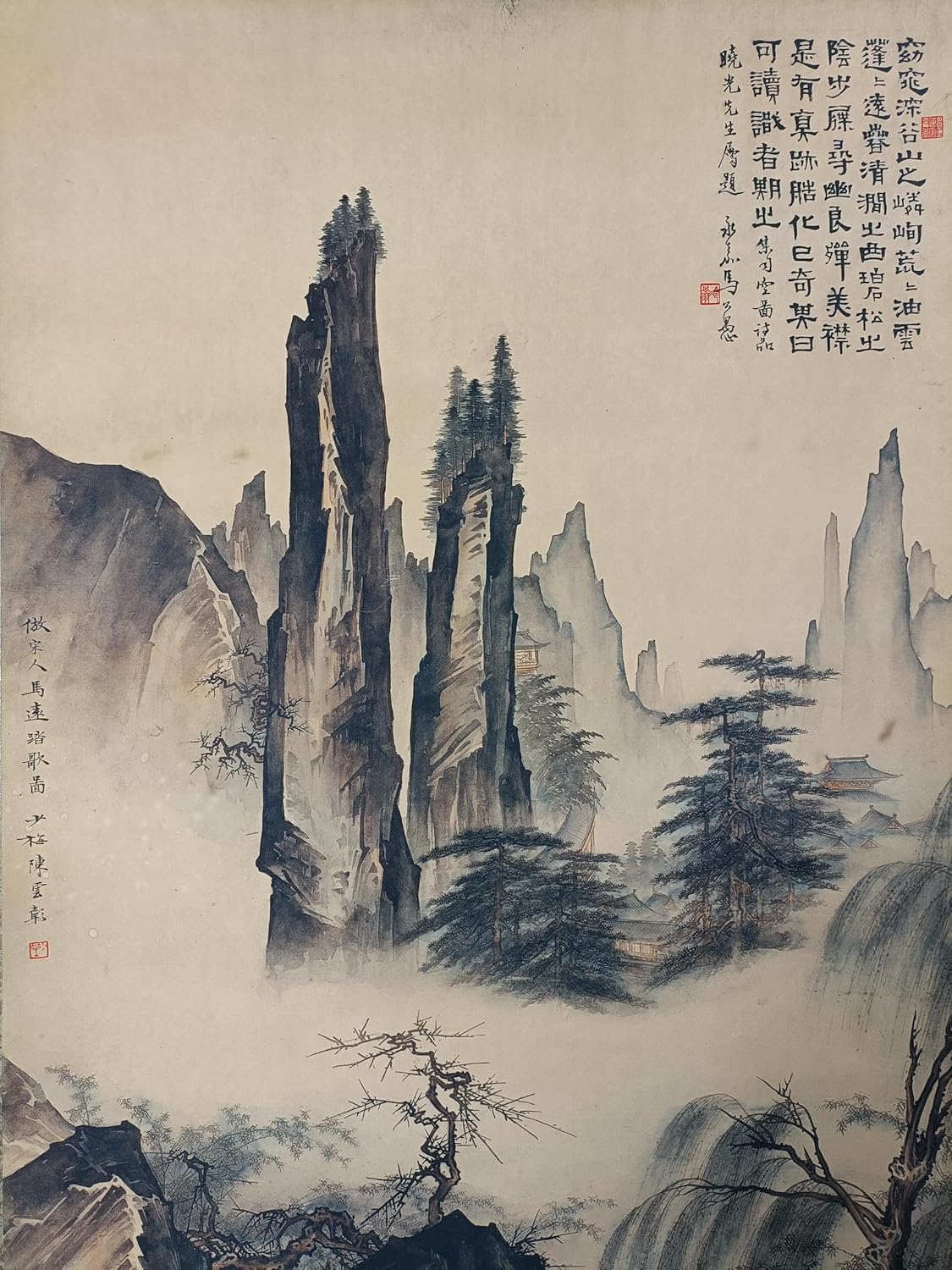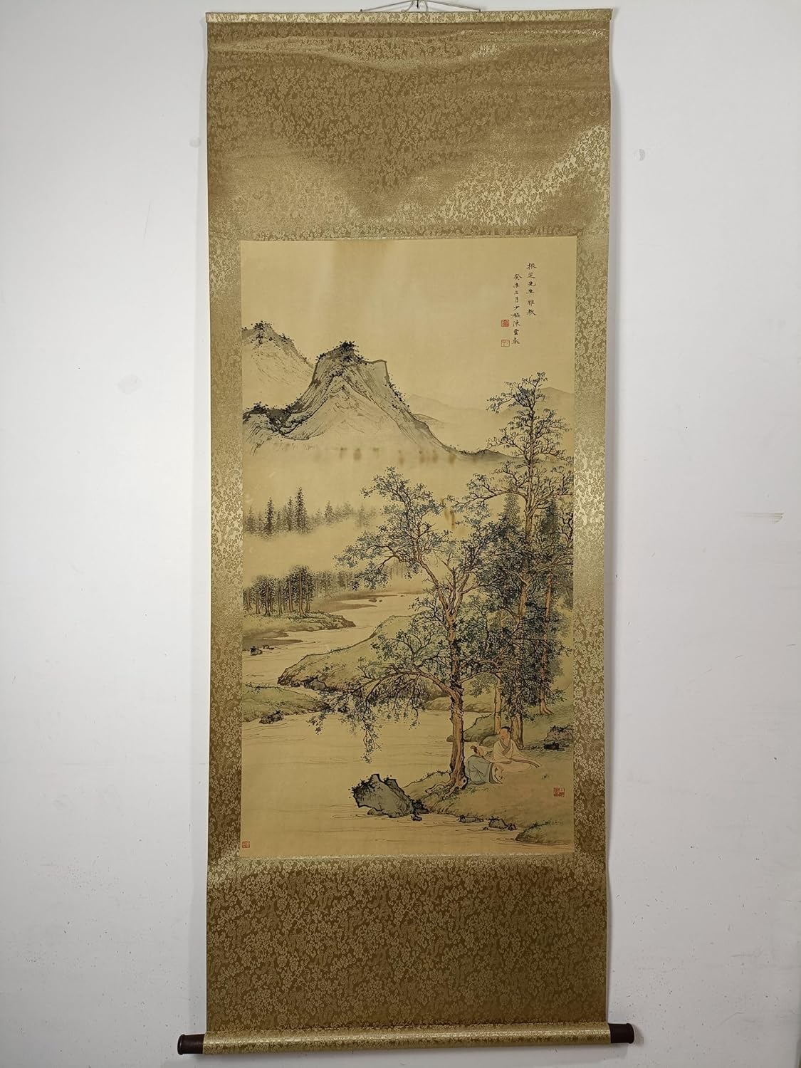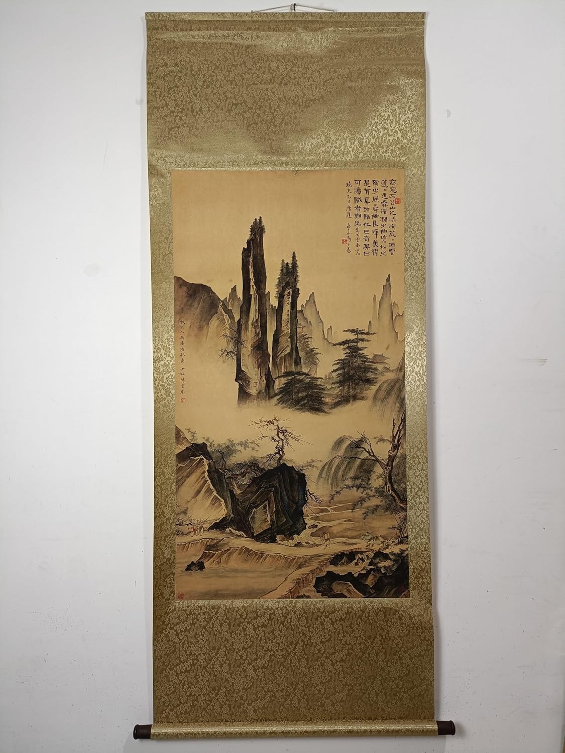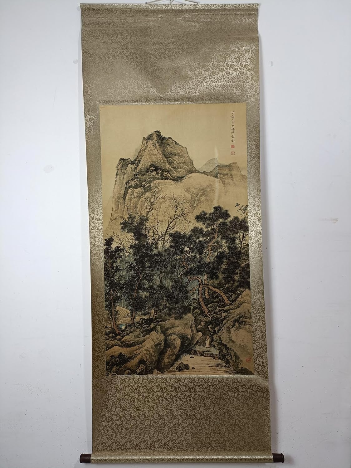 Bring peaceful mountain scenery into your home with this traditional Chinese landscape scroll wall art. Designed in a refined rice paper style aesthetic, this vertical hanging painting features classic oriental scenery that adds calmness, depth, and elegance to living rooms, studies, offices, hallways, and tea rooms. A graceful decorative accent for personal display or gift giving.