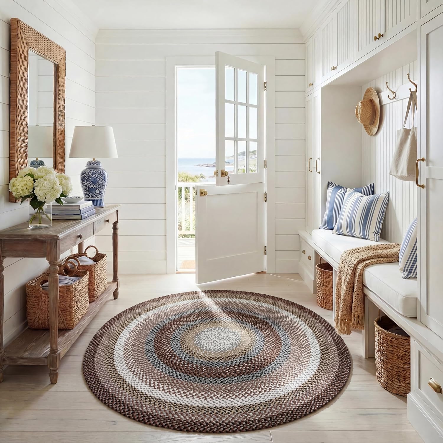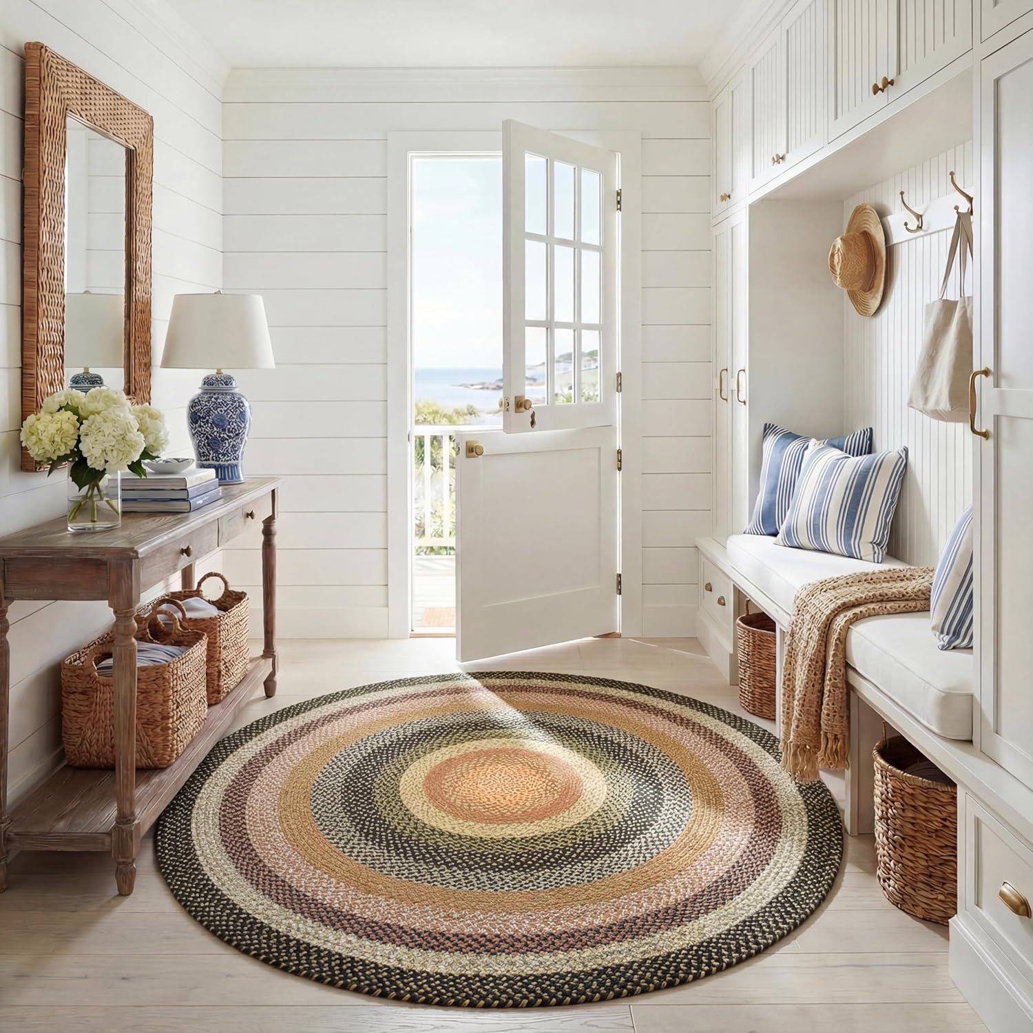 The Braided Rug Collection features artfully crafted area rugs perfect for both indoor and outdoor use. These charming floor coverings are handwoven with textured patterns and smart color schemes. Braided rugs are ideally styled for any classy-casual décor, whether in the living room or on the patio. Additionally, they are machine washable, ensuring easy maintenance and lasting beauty. Rug sizes may vary slightly.