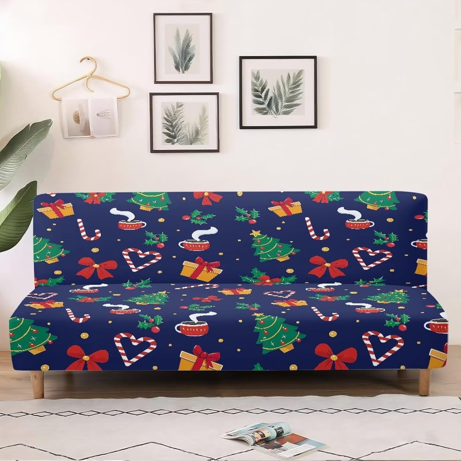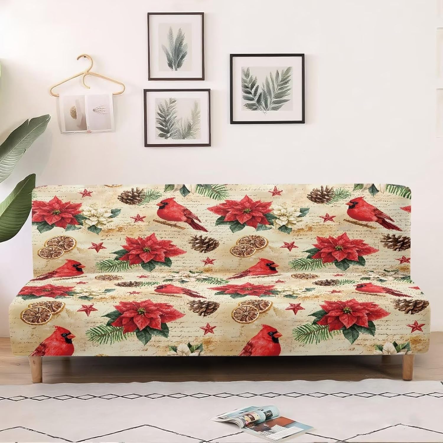 Material: Futon cover is made of high quality 95% polyester and 5% spandex fabric, with fashionable printed patterns. Soft texture, comfortable feel and good air permeability, making the interior decoration a new look. Great Fit: Comfortable sofa protector can be compatible with most furniture sizes. Please be sure to measure the back size of the furniture before buying (applicable for folding sofa beds without armrests within 62 inches - 74 inches or 74 inches - 88 inches in length). Stay in place: Our futon slipcover has an elastic band design, tightly wrap the bottom of futon for a better fit, not only to make the futon slipcovers look neat and wrinkle-free, looks like slip covers customized for your futon, but also to effectively prevent the futon sofa bed covers from sliding. Perfect Protect: These couch cover without armrests are super soft and comfortable. The futon sofa cover protects your furniture from daily water ingress, splashes, stains and tears. A must-have for families with children and pets. Moderate thickness, available in all seasons. Easy Care &Install: The futon slip cover is easy care. Machine washable, separately in cold water, mild laundey detergents are advised, please do not bleach, do not iron. The installation procedure is simple and can be completed by one person in less than 2 minutes