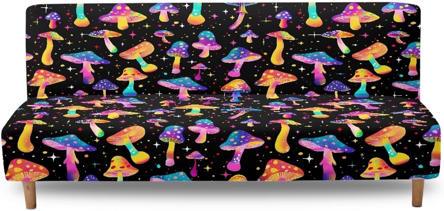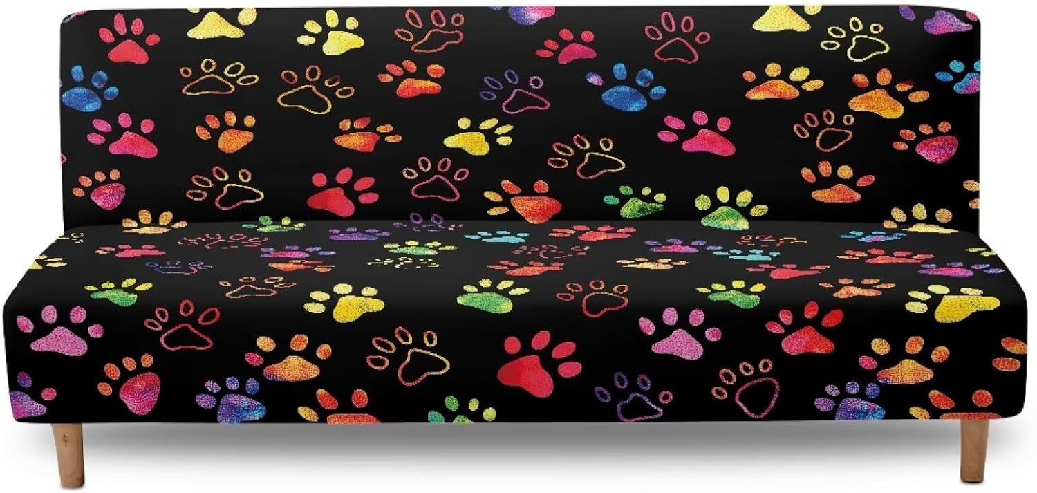 Crafted from a polyester and spandex blend, this armless futon cover offers the perfect balance of softness and stretch for a snug fit. The scratch-resistant, breathable fabric stands up to daily wear and stays cool during long sits, maintaining a neat appearance and comfy touch all day. Full-coverage design shields your futon sofa from daily wear, pet scratches, and food spills; the elastic bottom ensures a snug, non-slip fit to keep the cover in place during use.Its stretch allows this cover to complement most furniture styles. This futon sofa cover is designed for seat widths between 68 to 85 inches — one size fits most. Please measure your furniture before ordering and refer to the measurement guide in the product images for details.Crafted with thermal transfer printing, the futon cover features richer, more vibrant patterns and colors; it locks in color to resist fading and peeling, boosts product lifespan, and revitalizes your futon couch with a fresh new look.Wrinkle-resistant and machine washable for hassle-free care. Wash separately in cold water on a gentle cycle; avoid bleach.