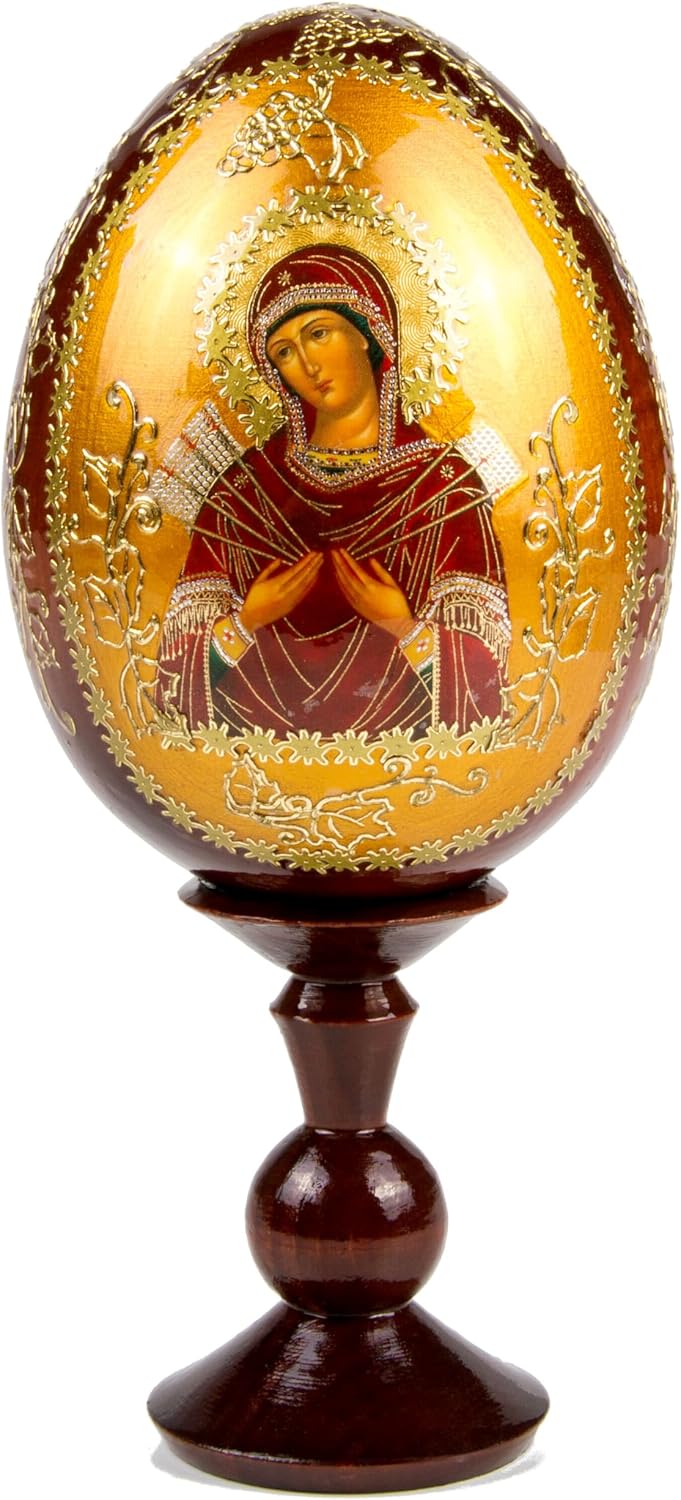 Handmade Wooden Lacquer Icon Egg on Stand: A Touch of Russian Tradition This exquisite Handmade Wooden Lacquer Icon Egg on Stand is a true masterpiece of Russian folk art. Crafted with meticulous attention to detail, this unique item combines traditional techniques with contemporary artistry. A Symbol of Tradition: The egg, a symbol of life and rebirth, holds deep significance in Russian culture. This icon egg, adorned with intricate lacquer paintings, is a beautiful representation of this tradition. Intricate Lacquer Painting: The egg is meticulously decorated with vibrant colors and intricate patterns, showcasing the artistry of skilled lacquer painters. The vibrant hues and delicate details bring the icon to life, creating a captivating piece of art. Handcrafted with Care: Each egg is meticulously handcrafted by skilled artisans, ensuring exceptional quality and attention to detail. The accompanying stand provides a stable and elegant display for this unique piece. A Perfect Decorative Piece: This icon egg is a perfect addition to any home or collection. It can be displayed on a shelf, mantelpiece, or altar, adding a touch of Russian tradition and artistic beauty to your decor. A Unique Gift: This handcrafted icon egg makes a truly unique and meaningful gift for loved ones, collectors, and anyone who appreciates Russian folk art. Handcrafted with meticulous attention to detail Intricate lacquer painting Vibrant colors and intricate patterns Comes with a decorative stand A symbol of Russian tradition
