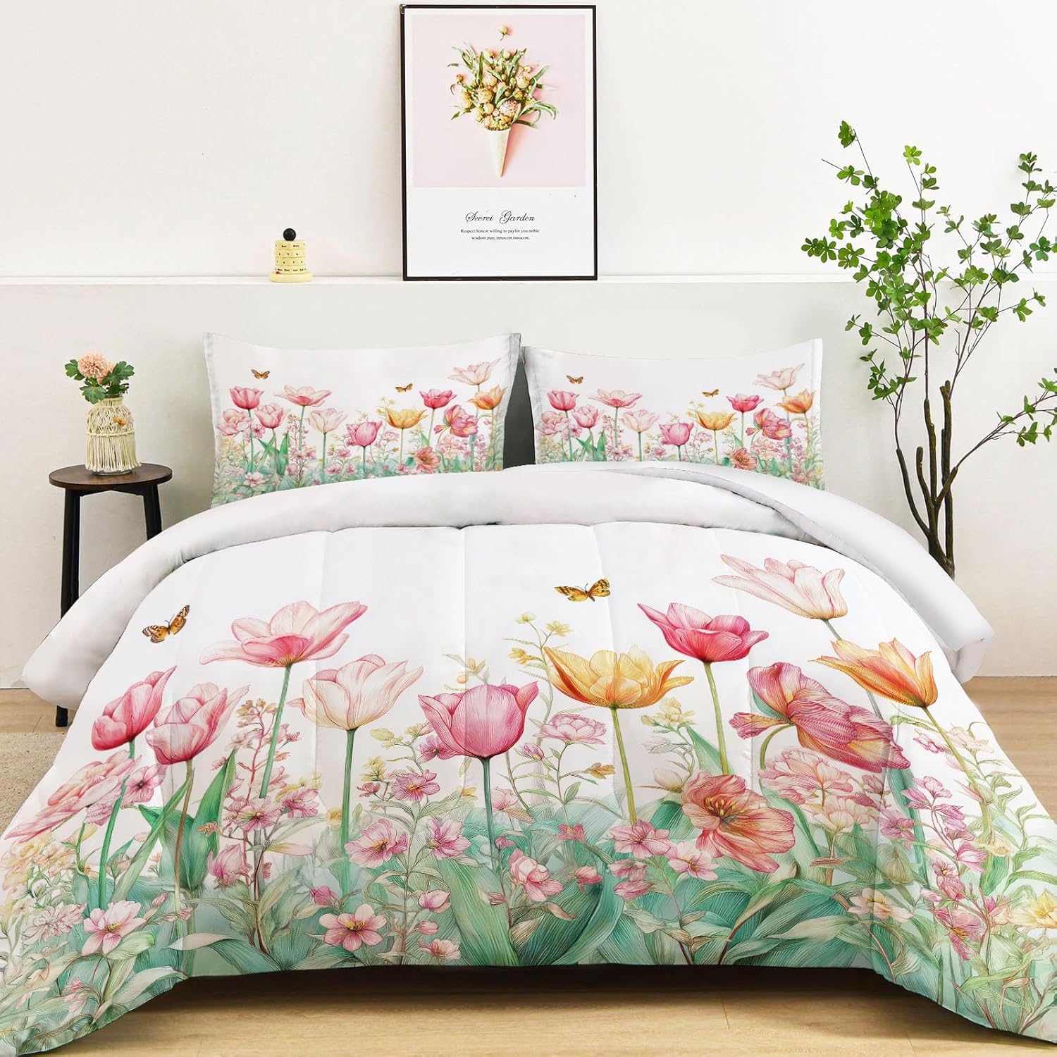Transform Your Bedroom with Style and Comfort Key Features: Excellent Craftsmanship Hidden stitching design secures the filling in place to avoid shifting and clumping while presenting a original look of the comforter. Made of light brushed & pre-washed microfiber, with high tensile strength, comforter sets are durable for longtime use. Soft and Cozy Our comforter features breathable microfiber filling, offering lightweight fluffiness and exceptional comfort. The skin-friendly fabric provides softness, while the hydrophilic treatment ensures quick moisture absorption, fast drying, and temperature regulation for a cooler, drier, and warmer sleep experience. All-Season Comfort This comfortable not too thick, with a luxuriously soft and lightweight fill, it is truly a season bedding collection, it will keep you warm but not make you sweat. Enjoy the airy feel of the comforter in warmer weather or snuggle into its warmth when temperatures drop. Easy to Care Machine wash on a delicate cycle with cold water. Sun-dry or tumble dry on low heat. Do not bleach or iron. Due to vacuum packaging, the comforter may arrive compressed. Simply expose it to air and gently tap it, and it will fluff up nicely after a few hours. Perfect for Any Room This bedding set is the ideal addition to any bedroom. Whether you’re looking for a new comforter for your guest room, a gift for a loved one, or simply want to update your own space, this set is designed for comfort and style-making it a must-have for every home. Size 1 x King Comforter: 104" x 90" 2 x Pillow Sham: 20" x 36" After-Sales Service Your satisfaction is our priority! For any questions or concerns, our customer service team is available to assist you promptly.