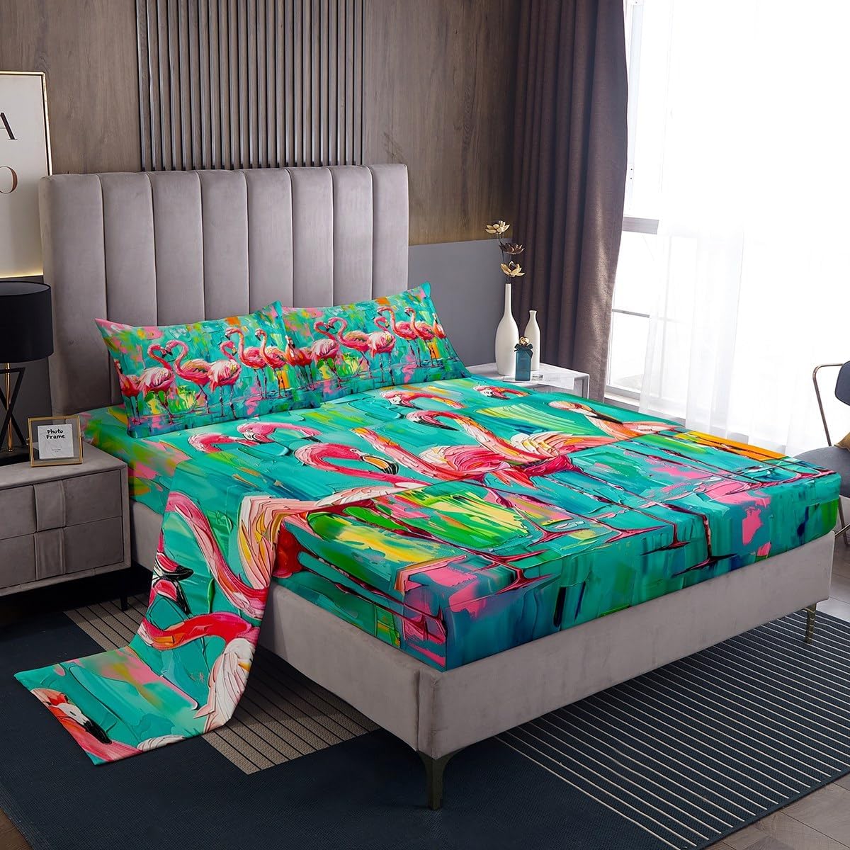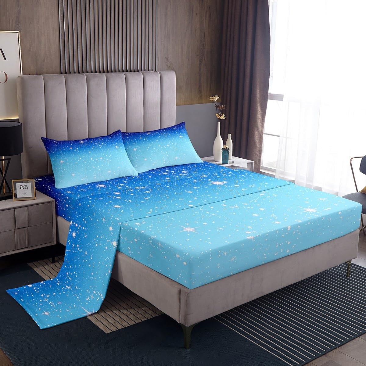 Our bed sheet is made of polyester fabric, lightweight and soft; stylish design is very suitable as room decoration for boys and girls; keep warm in winter and cool in summer; create a comfortable sleeping environment to make you fall asleep all night Range of size 1 twin fitted sheet 39 inch x 75 inch x 16 inch and 1 twin flat sheet 66 inch x 96 inch and 1 standard pillowcase 20 inch x 30 inch 1 full fitted sheet 54 inch x 75 inch x 16 inch and 1 full flat sheet 81 inch x 96 inch and 2 standard pillowcase 20 inch x 30 inch 1 queen fitted sheet 60 inch x 80 inch x 16 inch and 1 queen flat sheet 90 inch x 102 inch and 2 standard pillowcase 20 inch x 30 inch 1 king fitted sheet 78 inch x 80 inch x 16 inch and 1 king flat sheet 90 inch x 106 inch and 2 standard pillowcase 20 inch x 36 inch