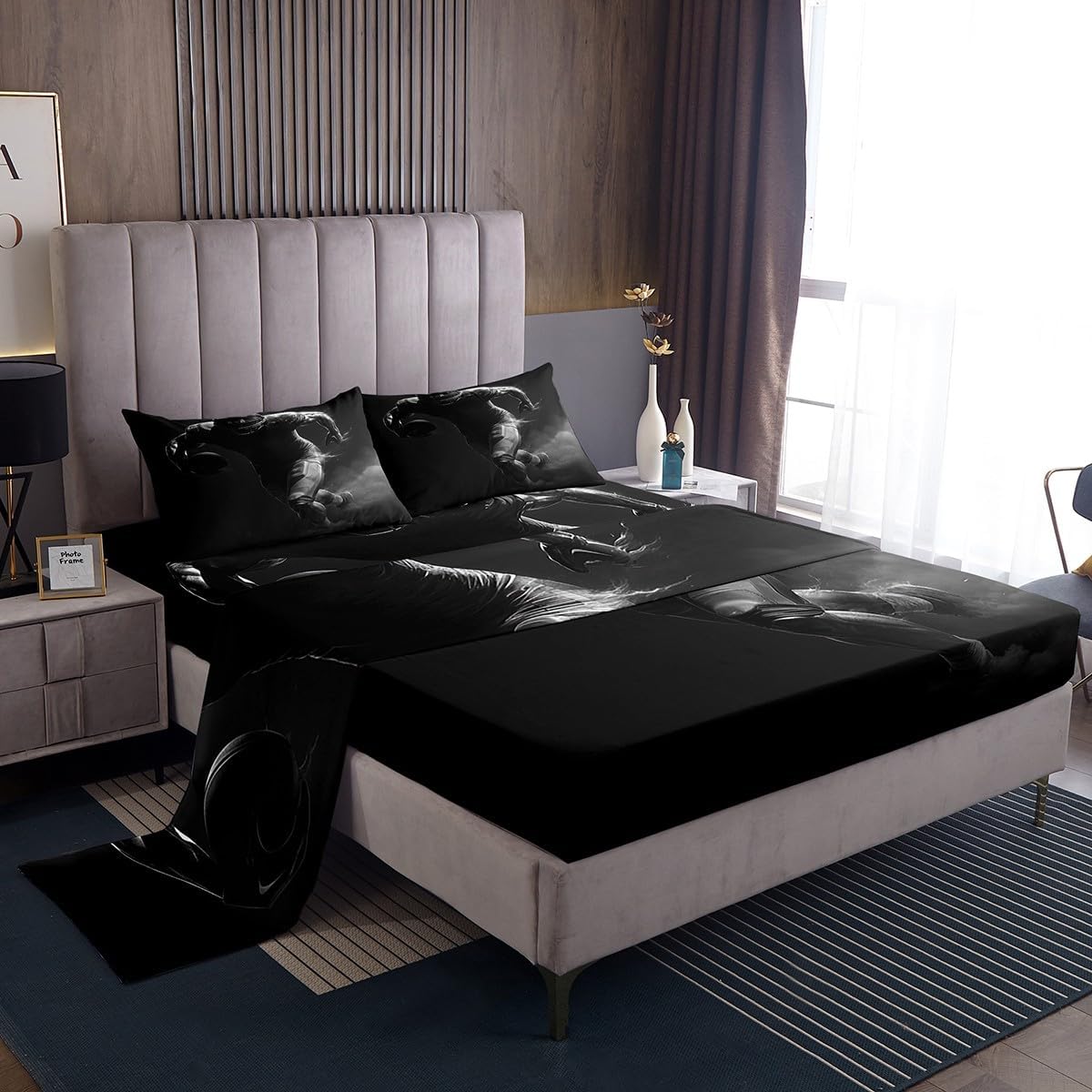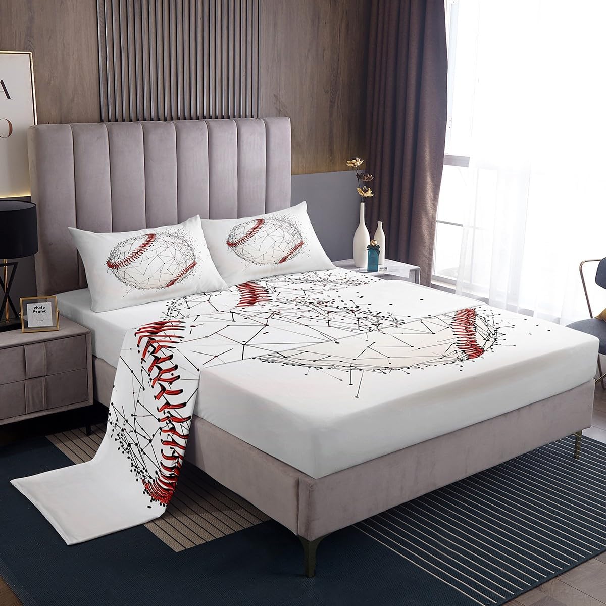 Our bed sheet is made of polyester fabric, lightweight and soft; stylish design is very suitable as room decoration for boys and girls; keep warm in winter and cool in summer; create a comfortable sleeping environment to make you fall asleep all night Range of size 1 twin fitted sheet 39 inch x 75 inch x 16 inch and 1 twin flat sheet 66 inch x 96 inch and 1 standard pillowcase 20 inch x 30 inch 1 full fitted sheet 54 inch x 75 inch x 16 inch and 1 full flat sheet 81 inch x 96 inch and 2 standard pillowcase 20 inch x 30 inch 1 queen fitted sheet 60 inch x 80 inch x 16 inch and 1 queen flat sheet 90 inch x 102 inch and 2 standard pillowcase 20 inch x 30 inch 1 king fitted sheet 78 inch x 80 inch x 16 inch and 1 king flat sheet 90 inch x 106 inch and 2 standard pillowcase 20 inch x 36 inch