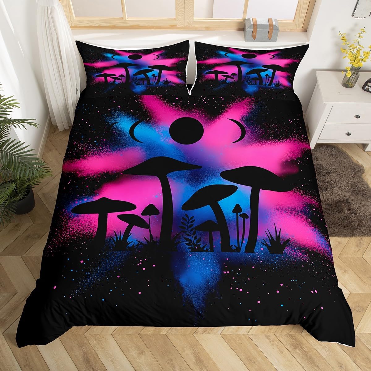 Package Include: Duvet Cover, Pillowcase; High Quality Duvet Cover Set Pattern Bedding Set, simply decorating your rooms any time you want, bringing you fresh feel for year round use. Polyester: Made from polyester microfiber, the sheet set offers strength, natural resistance to shrinking and a noticeably soft hand feel. Size Information: Twin size 2pcs: 1 x Duvet Cover 68" x 90", 1 x pillowcase 20" x 30".Without Comforter. Full size 3pcs: 1 x Duvet Cover 80" x 90", 2 x pillowcase 20" x 30".Without Comforter. Queen size 3pcs: 1 x Duvet Cover 90" x 90",2 x pillowcase 20" x 30".Without Comforter. King size 3pcs: 1 x Duvet Cover 104" x 90", 2 x pillowcase 20" x 36".Without Comforter. Personalize your bedroom: Beautiful design and colorful print, makes your bedroom unique and brings you a wonderful dream. Washing instructions: Machine wash separately in cold water,hang dry, do not bleach. Occasion: The cute soft duvet cover bedding sets designed for Children ,Adult, Men, Women, Teens. This duvet cover set is also suitable for full seasons, Spring, Summer, Autumn and Winter.
