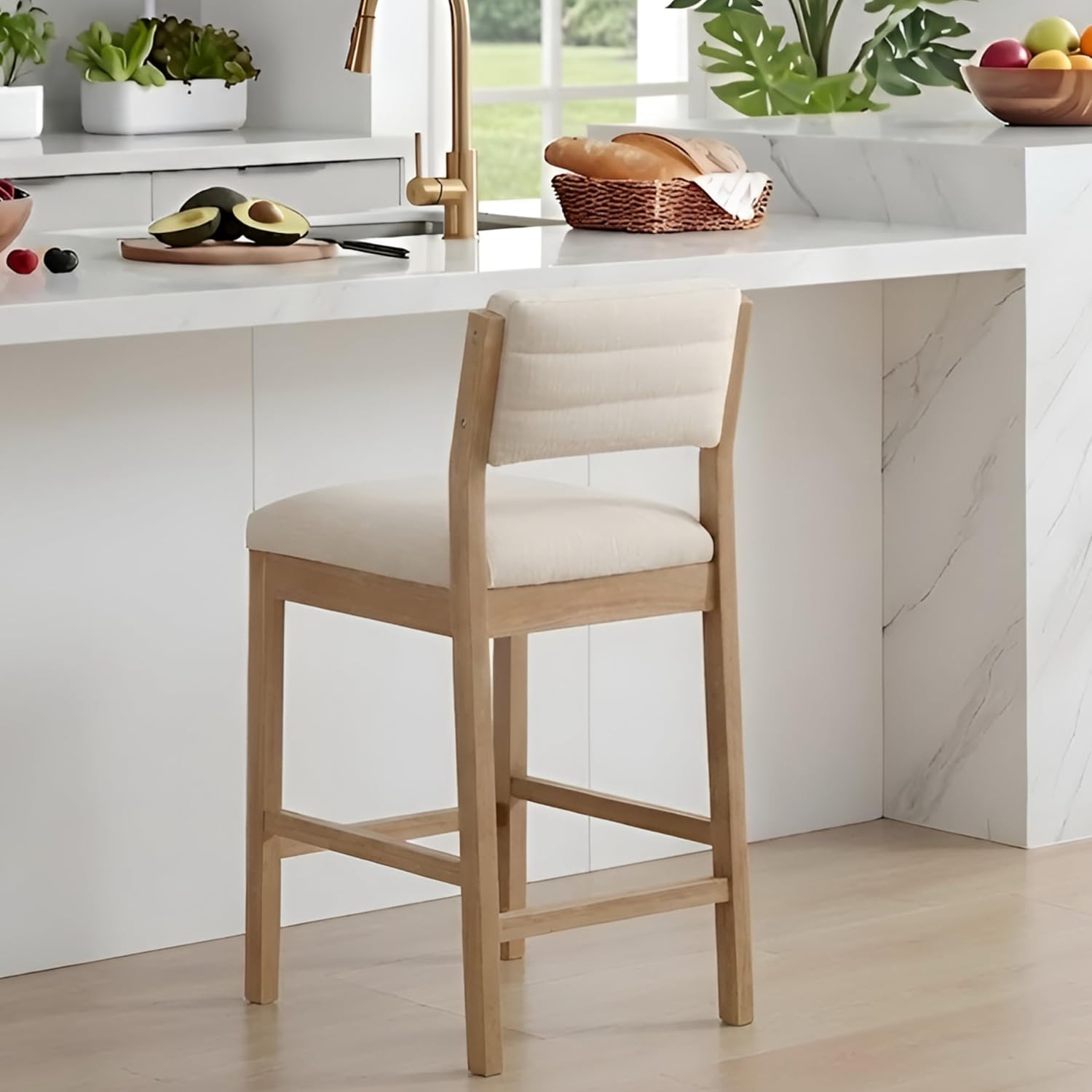 • 【STYLISH AND STURDY】The counter stool is crafted with sturdy rubberwood legs and holds up to 300 pounds. It has a built-in footrest so you can enjoy each snack in complete comfort. This timeless counter stool will seamlessly blend in with your modern farmhouse home.