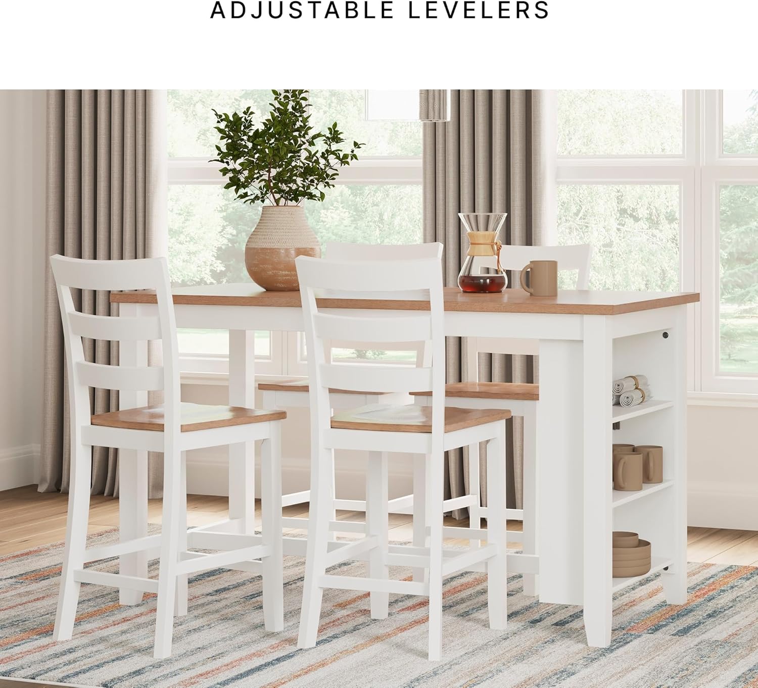 • HANDSOMELY CRAFTED: Made with solid wood frame. Light natural mango wood finish with a clean white. Contoured mango wood veneer seat. Includes adjustable levelers