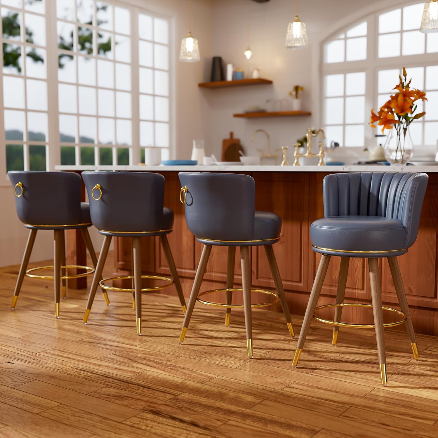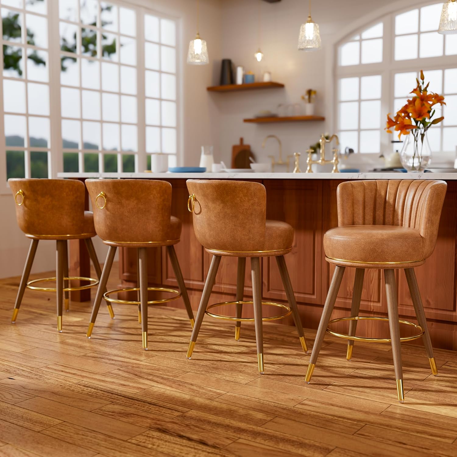 • 360° FREE SWIVEL: SeekFancy counter height bar stools set of 4 are made from premium PU leather. Featuring a soft cushion and elegant curves, these counter stools blend comfort and style. The 360 degree swivel seat allows for easy dining and communication