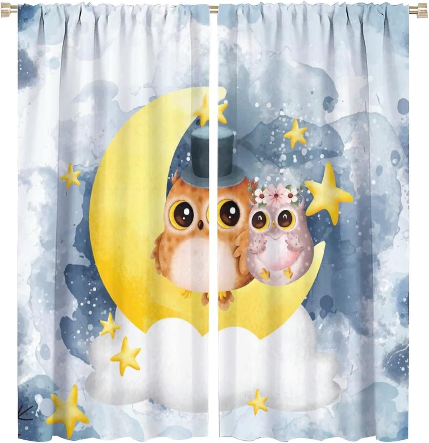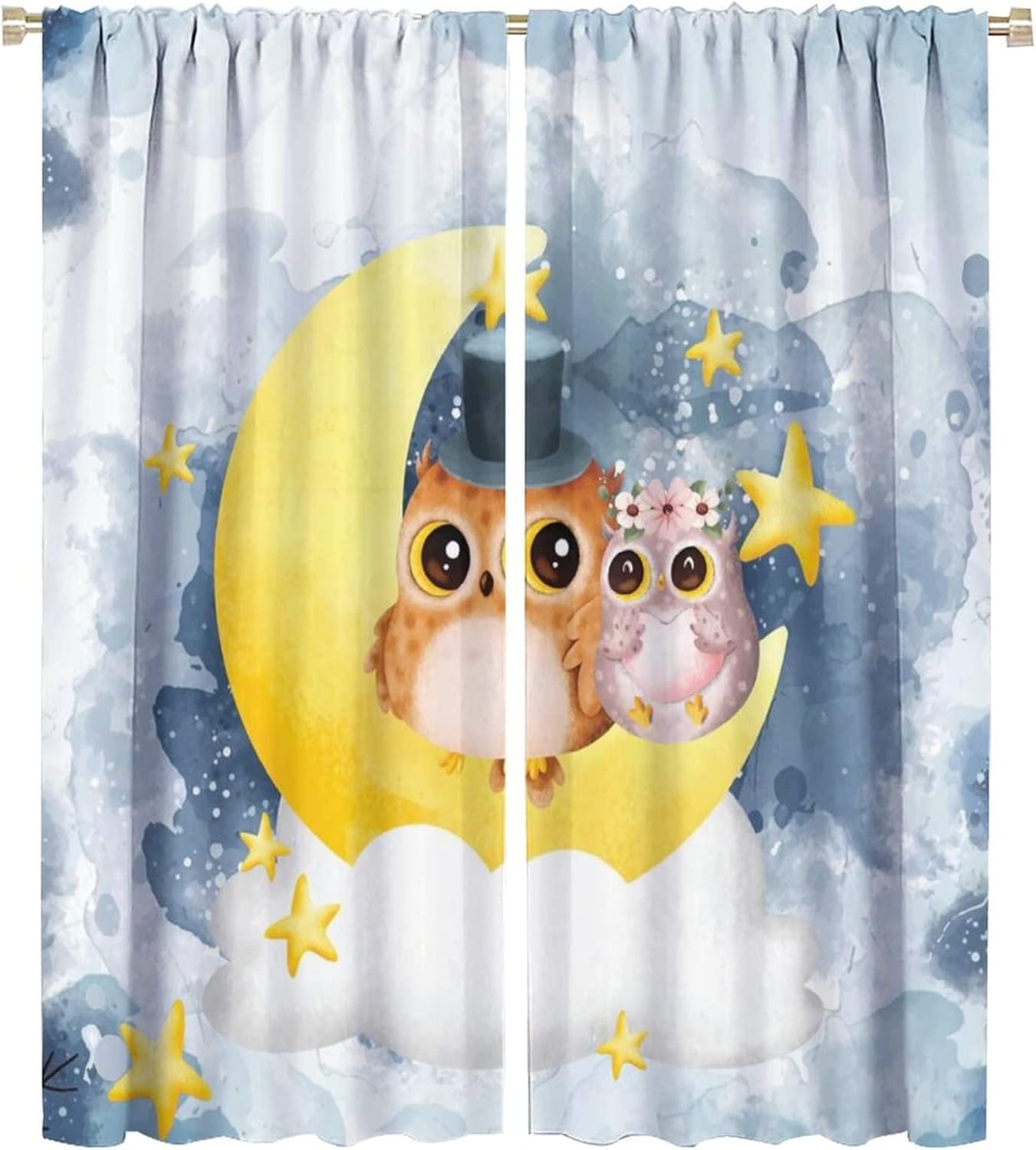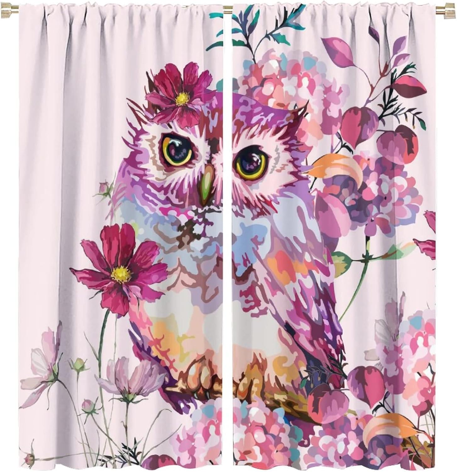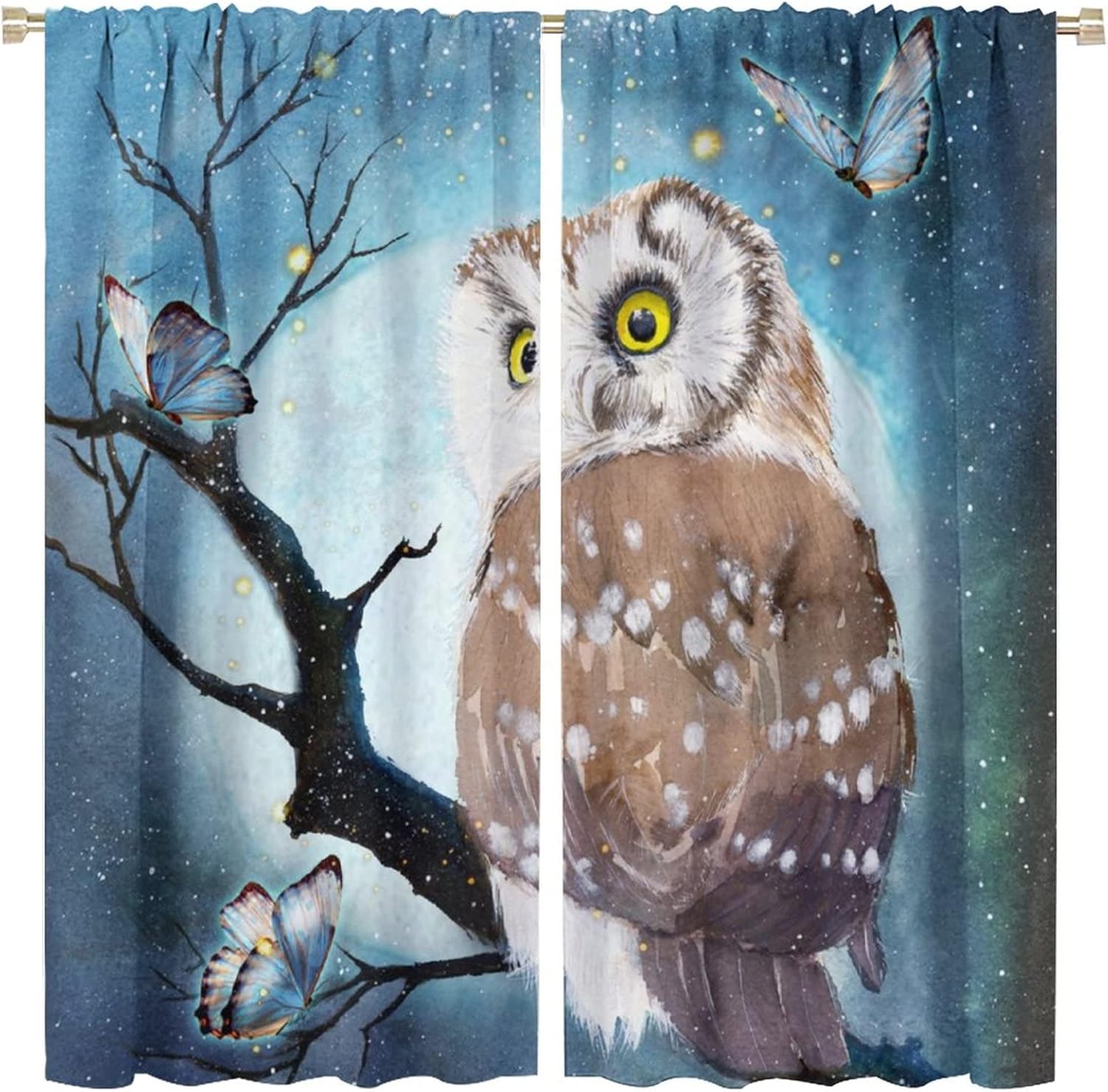 This Watercolor Cute Owl Curtains can block out 85%-99% sunlight and UV ray ( Darker colors work better), perfect for late sleepers and afternoon naps. Our energy saving curtains insulate against summer heat and winter chill to balance your room temperature, reduce outside noise .This Watercolor Cute Owl Curtains liven up your indoor or outdoor spaces with a sense of airiness and beauty.These Watercolor Cute Owl Curtains are suitable for the bedroom, living room, dining room, infant room, kids room, office or other public place.Material:Polyester high quality fabric curtains, warm and interesting, beautifully designed.Kindly Remind:- Don't use sharp things scratching curtains.- For proper fullness panels should slightly larger than the window size the width of your window.- 24 Hours customer support.- As different computers display colors differently, the color of the actual item may vary slightly from the above images.