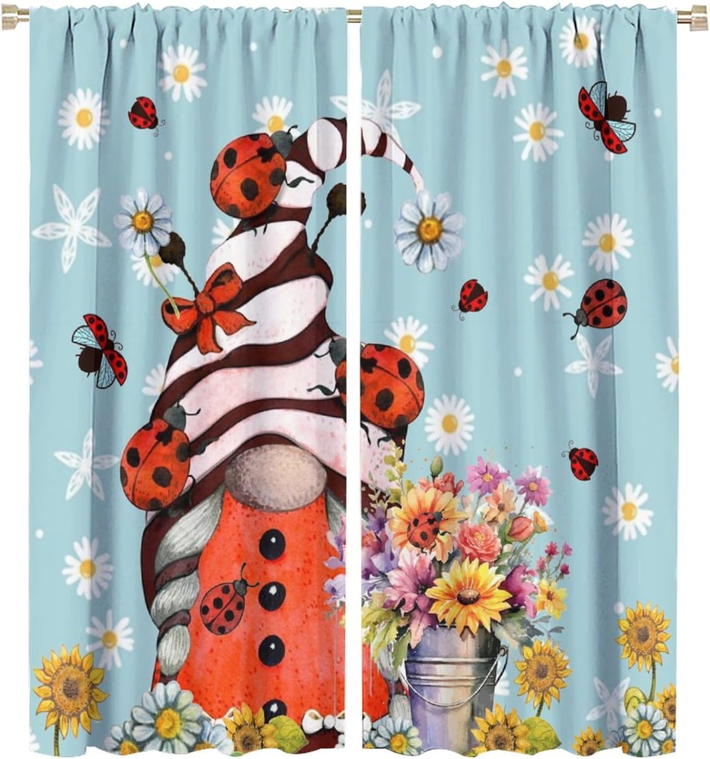 Welcome to our store. Total size: 45" L × 42" W (114cm × 107cm),Includes two pieces, each of which measures:45" length × 21" width (114cm × 53.5cm). Total size: 54" L × 42" W (137cm × 107cm),Includes two pieces, each of which measures:54" length × 21" width (68.5cm × 53.5cm). Total size: 63" L × 42" W (160cm × 107cm),Includes two pieces, each of which measures:63" length × 21" width (160cm × 53.5cm). Total size: 63" L × 55" W (160cm × 140cm),Includes two pieces, each of which measures:63" length × 27.5" width (160cm × 70cm). Total size: 63" L × 63" W (160cm × 160cm),Includes two pieces, each of which measures:63" length × 31.5" width (160cm × 80cm). Total size: 72" L × 63" W (183cm × 160cm),Includes two pieces, each of which measures:72" length × 31.5" width (183cm × 80cm). Total size: 63" L × 72" W (160cm × 183cm),Includes two pieces, each of which measures:63" length × 36" width (160cm × 91.5cm). Total size: 84" L × 84" W (214cm × 214cm),Includes two pieces, each of which measures:84" length × 42" width (214cm × 107cm). People always prefer using some decor to highlight the visual aesthetic. The brebasf Cute Cartoon Animal Ladybug curtains is the beautiful choice for bedroom.Good and Healthy materialOur Abstract Modern Art Spring Forest Green Leaf Ladybugs curtain is made from a safe and durable polyester fabric ,a healthy choice for any living room.★ 95% polyester fabric.★ Easy to install. Easy to hang.★ Various style theme design, so that the bathroom is full of color and fun.Note1. Please allow a little bit of size deviation due to manual measurement.2. Due to differences in computer monitors, please allow a little bit of color difference between the picture and the object.