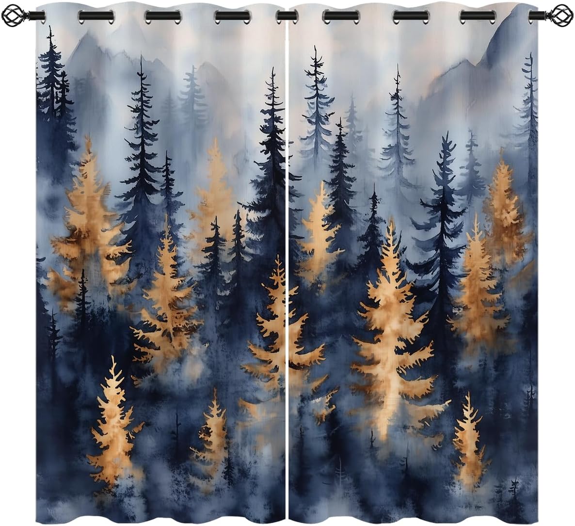 These print curtains are perfect for Living room, bedroom, kids room, kitchen, yard, patio, parlor, sliding door with Green Misty Forest, Nature Tree Mountain Woodland pattern.- Unique design:· Save energy costs by insulating against heat and cold.· Reduce noises from busy streets and high-traffic areas.· Protect furniture from sun damage and fading.· Provides complete privacy when needed· Perfect for any bedroom, office kids room and living room.- Package Included:· Blackout window curtains 2 Pcs set ( two panels).- Material:· Our Blackout Curtain Liners are crafted from a durable soft and thick triple weaved blackout fabric which can block out sunlight and UV rays. The darker color of the fabric, the more light it can block.- Easy Care Instructions:· Machine washable in cold water· Do not bleach.· tumble dry on low· low temperature ironing- Notes:· For your curtains to be more perfect, please choose a size 5-10 Inch larger than the actual window width.· here may be slight differences in colors on different displays. If you have any questions about the product, please feel free to contact us.