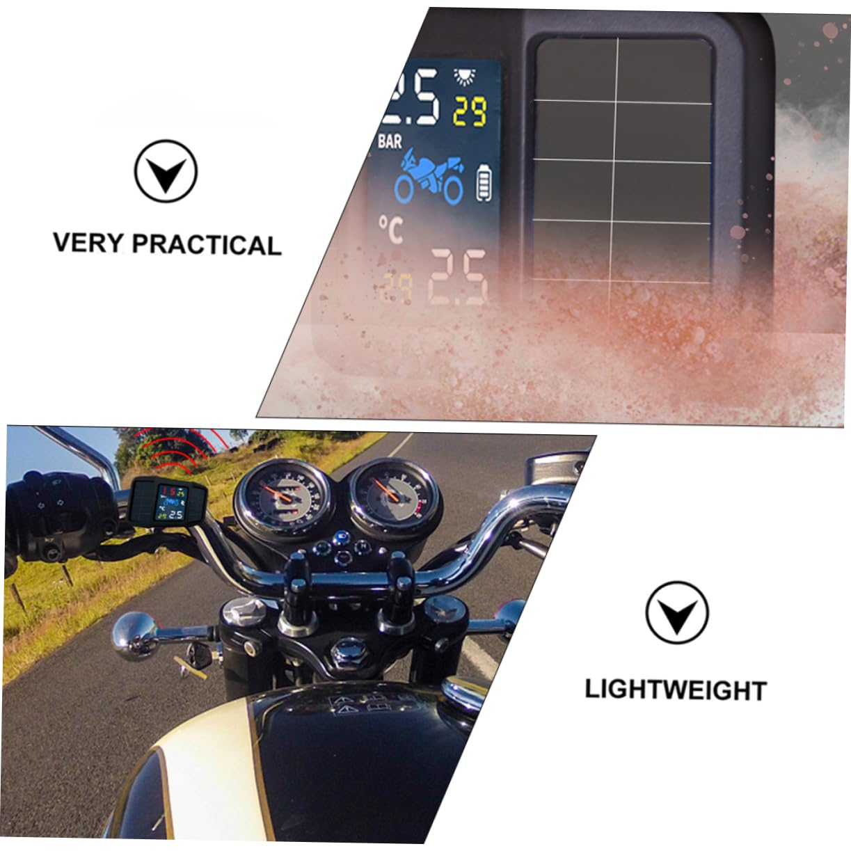 Package List 1 x host 1 x sensor Characteristics -Material: Plastic Motorcycle Tire Pressure Sensor -Charging: USB Tire Pressure Monitoring Tool -Tire temperature monitoring accuracy: Plus or minus 2°C motorcycle accessories -Power supply: Battery (Included) tire pressure monitoring equipment -Color: Black Tire Pressure Sensor for Motorcycle -Size: About 7.30X4.70X2.00cm/2.87X1.85X0.79in durable tire pressure measuring tool -Tire pressure monitoring accuracy: 0.1 BAR tire pressure equipment - Made of materials, it is safe and durable and tire pressure sensor. - Replace with a or damaged tire pressure sensor tire pressure monitor. - It has a simple application method, which is easy to install and use motorcycle supply. - This product is small and light, easy to carry and convenient for your use. - A solar tire pressure monitor can help you detect tire pressure in real time and protect your travel safety.Goods Descriptionmotorcycle supply need a sturdy, reliable tire pressure equipment that can do multiple tasks at once? Our motorcycle tire pressure sensor will meet your needs very well.Tire Pressure Sensor for Motorcycle Made of materials, it can accurately help you monitor the real-time air pressure and temperature of the tires, ensure your safety to extent and help extend the use time of the tires