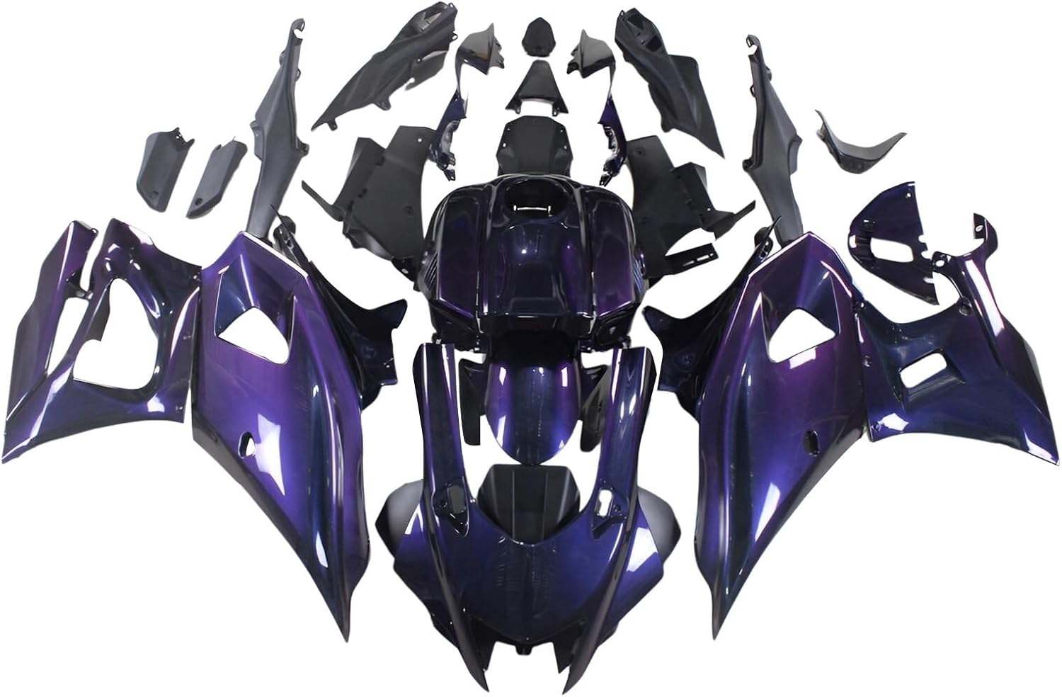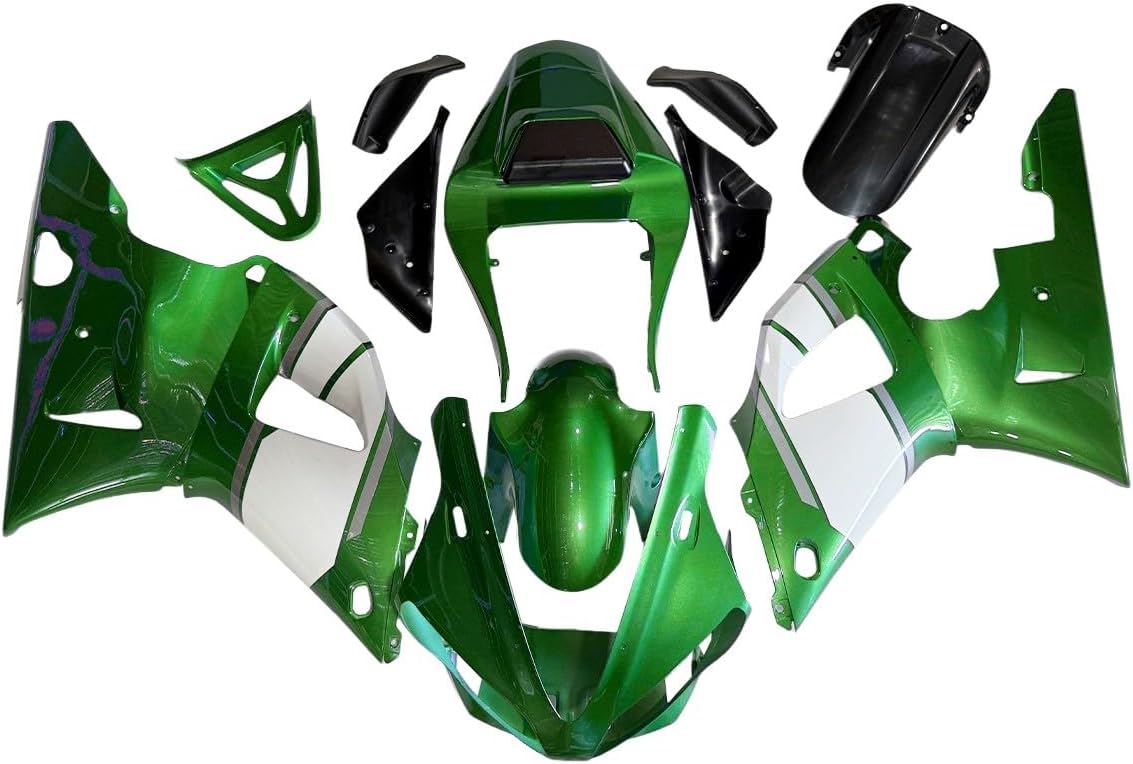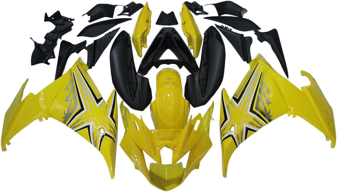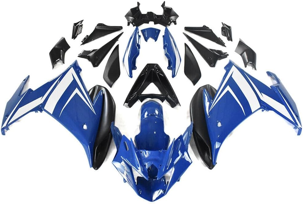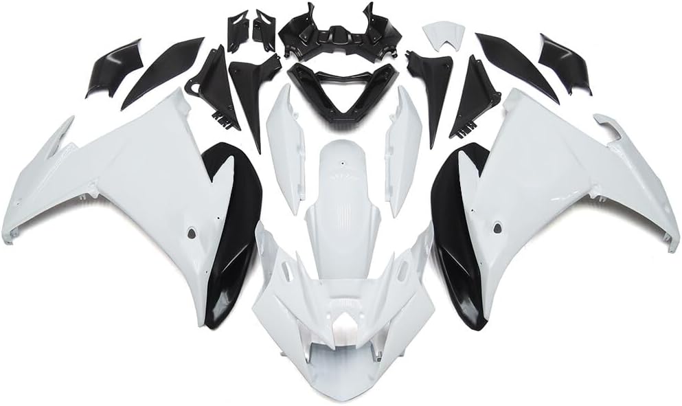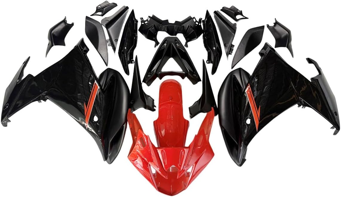 Fairings Fitment: Fit 0Fairing Introduction:1. Molding: Injection2. Material: High quality, flexible and durable ABS plastics3. Colors: Fairing will be as the pictures shown, and may NOT match the color of OEM or your original parts.4. Condition: 100% Brand New aftermarket non-OEM parts and the holes are pre-drilledPieces Included:1. Complete Fairing Kit: front nose fairing + left/right side fairings + front fender + tail fairing and inner trim parts (All parts shown in the pictures are included)2. Other Accessory: Heat Shield & Tank Pad & Windshield & Fairing Bolt KitInstallation:1. Holes pre-drilled, fits just like original fairings.2. Highly recommend installed by professional (Installation instruction is not included, please contact us if you encounter any installation problems)Please Note:1. The paint is not mixed by paint code, so we could not make sure the color of fairings 100% matches your original ones.2. If item got damaged during shipping (seldom happen), we'll provide replacement for free upon photo confirmation.3. This is an aftermarket custom item. It will fit the models listed but modification may or may not be required. This item is intended for professional installation. Make sure it will fit before you buy. Thank you for your understanding.