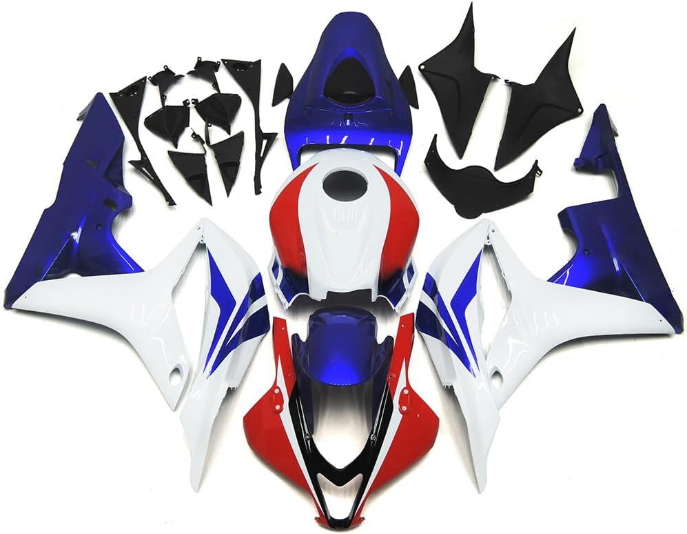 Fitment: For Honda CBR600RR F5 2007-2008 Fairings Kit Body Work.Specification:1. Condition: Aftermarket 100% Brand new,NON OEM.2. Color: As Picture Shown.3. Material: High quality ABS plastic, good elasticity and heat tolerance, not easy to be cracked.4. Surface Finish: High quality paint job with UV paint with 3 layers of clear coat to protect the paint job.5. Molding: ABS Injection Molded.6. Mounting Holes: Correct tabs and pre-drilled holes to ensure easy and quick installation.Package includes:- Full Fairing parts: front nose fairing + left/right side fairings + front fender + tail fairing and inner trim parts (All parts shown in the pictures are included).- Other parts included: Complete bolts & windscreen & heat shield.Installation:1. Professional installation highly recommended.2. Only compatible with original motorcycle, not modified ones.3. Holes pre-drilled, fits just like OEM fairings.Note: * Installation instructions are not included. * Please make sure that this fairings fit for your bike.( Model and Year )