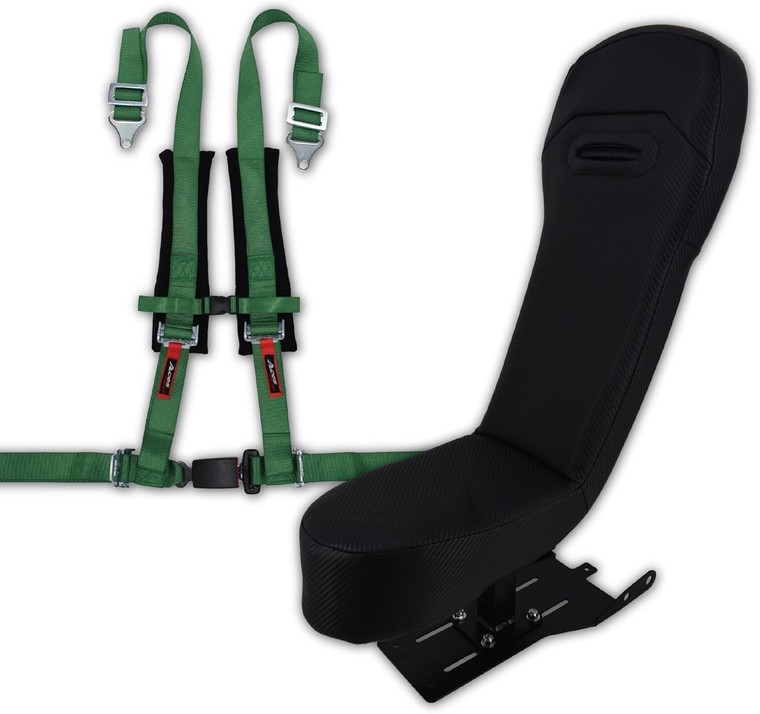 Introducing the Ultimate Bump Seat for Your 2020+ RZR Pro, Turbo R, and Pro R 4-Seat Model! Upgrade your off-road experience with our specially designed bump seat that perfectly fits the 2020 and newer RZR Pro, Turbo R, and Pro R models. Exclusively tailored for the 4-seat variant, this bump seat is a game-changer for young riders weighing less than 60lbs. What sets our bump seat apart? It's the only adjustable bump seat on the market! Now you can customize the seating to ensure the perfect fit for your little adventurers. Installing the bump seat is a breeze – effortlessly bolt on this fantastic addition to your RZR for an enhanced riding experience. Crafted from high-quality marine-grade carbon vinyl with plush padding, our bump seat not only offers durability but also ensures your little ones ride in comfort. Worried about safety? Fear not! Each bump seat comes complete with an Aces Racing 4-point harness, providing the utmost security during your off-road escapades. Why choose our bump seat? 1. **Exclusive Compatibility:** Tailored to fit the 2020+ RZR Pro, Turbo R, and Pro R 4-seat models. 2. **Adjustable Comfort:** The only bump seat on the market that is fully adjustable for a personalized riding experience. 3. **Safety First:** Equipped with an Aces Racing 4-point harness to ensure the utmost safety for riders. 4. **Premium Materials:** Constructed with marine-grade carbon vinyl and padded for maximum durability and comfort. 5. **Effortless Installation:** Everything bolts on effortlessly, saving you time and hassle. Enhance your RZR's capabilities and make family adventures more enjoyable with our Adjustable Bump Seat – the perfect accessory for young off-road enthusiasts. Elevate your ride, invest in quality, and let the adventures begin!