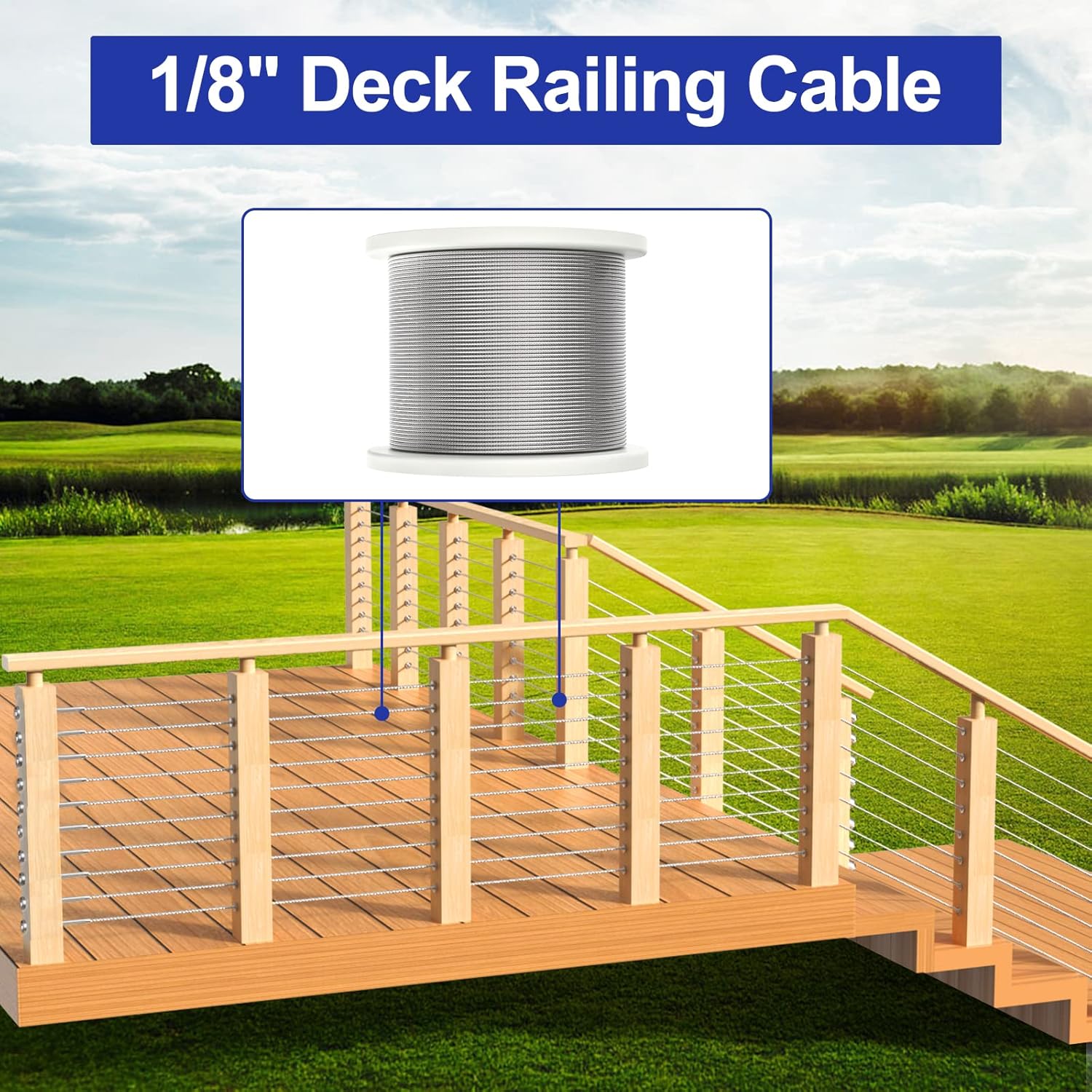 BLIKA 500FT 1/8" Deck Railing Cable,10 Ton Hydraulic Crimping Tool With Cable Cutter and 60 Pack Right&Left Handed Thread Swage Lag Screws