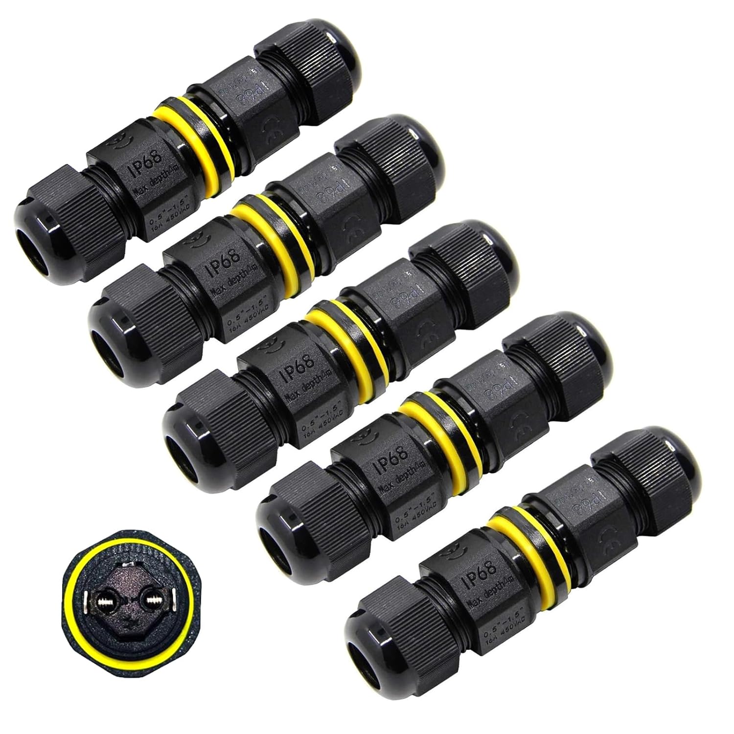 Temeloko IP68 Waterproof Cable Connector delivers high-performance protection for all kinds of outdoor and underwater electrical connections. Made from flame‑retardant PA66 nylon, featuring a silicone O‑ring and twist-lock cap, it ensures a dustproof and watertight seal every time. Perfect for: Outdoor garden and landscape lighting Solar panel or LED strip wiring Underground or outdoor irrigation and pump connections Outdoor signage or billboard power feeds Technical Specifications: IP Rating: IP68 (dust-tight and permanent immersion safe) Wire Diameter Range: 4–10 mm Configuration: 2‑way / 2‑pin cable connection Electrical Rating: Up to 450 V / 16–24 A Material: PA66 nylon, UV-resistant, flame-retardant Operating Temperatures: –40 °C to 105 °C Why Temeloko? Eliminates leaks with robust waterproof sealing Installs quickly without tools Compatible across multiple cable sizes Backed by responsive support and hassle‑free replacements