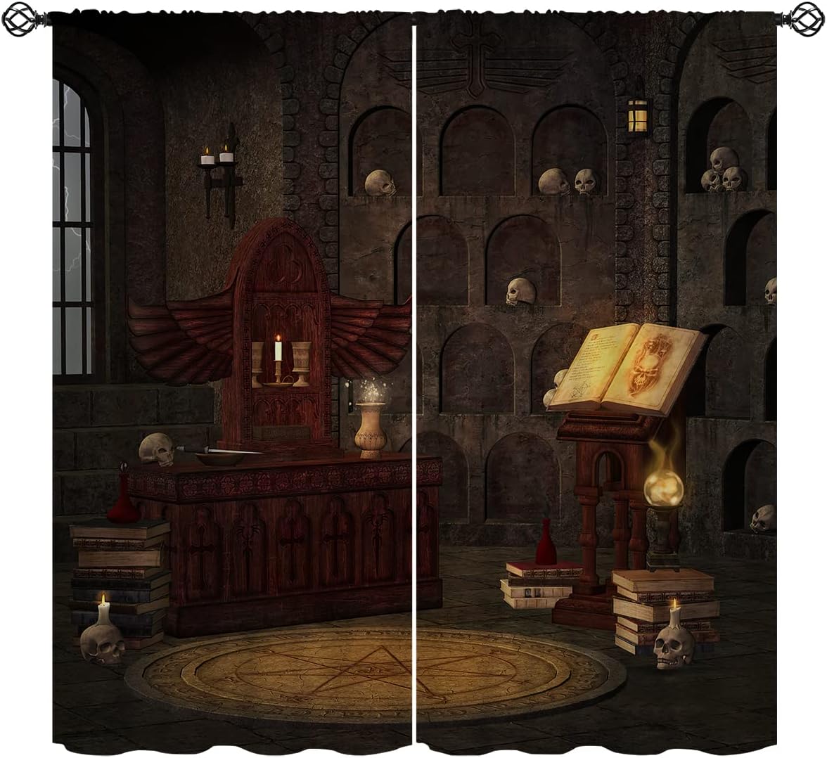 These print curtains are perfect for Living room, bedroom, kids room, kitchen, yard, patio, parlor, sliding door with Gothic pattern.- Unique design:· Save energy costs by insulating against heat and cold.· Reduce noises from busy streets and high-traffic areas.· Protect furniture from sun damage and fading.· Provides complete privacy when needed· Perfect for any bedroom, office kids room and living room.- Package Included:· Blackout window curtains 2 Pcs set ( two panels).- Material:· Our Blackout Curtain Liners are crafted from a durable soft and thick triple weaved blackout fabric which can block out sunlight and UV rays. The darker color of the fabric, the more light it can block.- Easy Care Instructions:· Machine washable in cold water· Do not bleach.· tumble dry on low· low temperature ironing- Notes:· For your curtains to be more perfect, please choose a size 5-10 Inch larger than the actual window width.· here may be slight differences in colors on different displays. If you have any questions about the product, please feel free to contact us.
