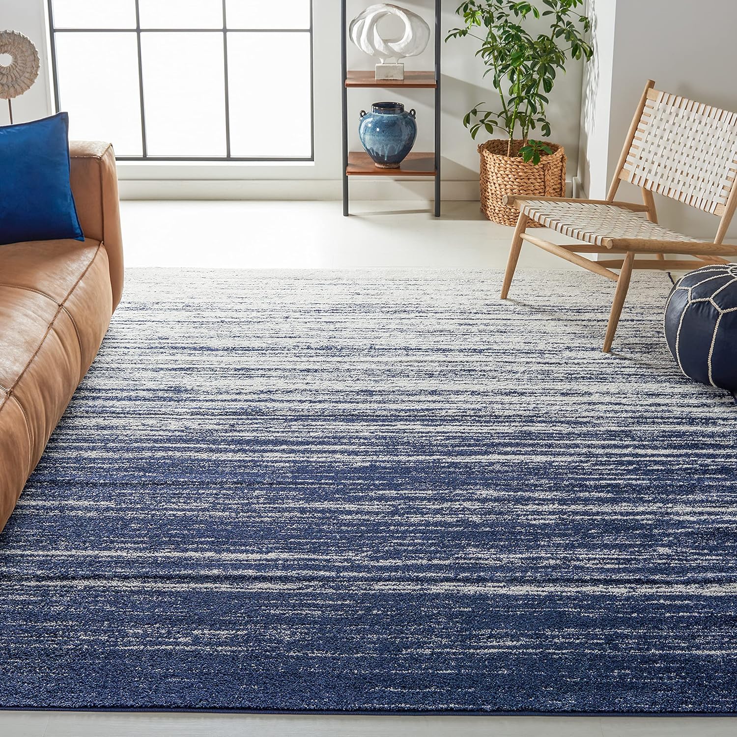 Make a decorative statement with the SAFAVIEH Adirondack Collection, where modern design meets everyday comfort. Machine-woven from high-quality polypropylene fibers, this ombre-striped rug offers lasting durability, a soft feel underfoot, and a virtually non-shedding, low-pile surface perfect for high-traffic areas. Subtle striated lines create a stunning gradient effect with a washed, contemporary finish that blends seamlessly with modern, farmhouse, and transitional décor styles. Ideal for the living room, bedroom, foyer, or kitchen, this versatile rug adds warmth and style to any space. Rugs may arrive rolled or folded depending on size; reverse rolling and smoothing out creases will help the rug lie flat. Use a SAFAVIEH rug pad to enhance stability, prevent shifting, and protect floors. Slight color variations may occur due to dye lot differences or monitor settings, adding to the rug’s unique character. Rug sizes may vary slightly.