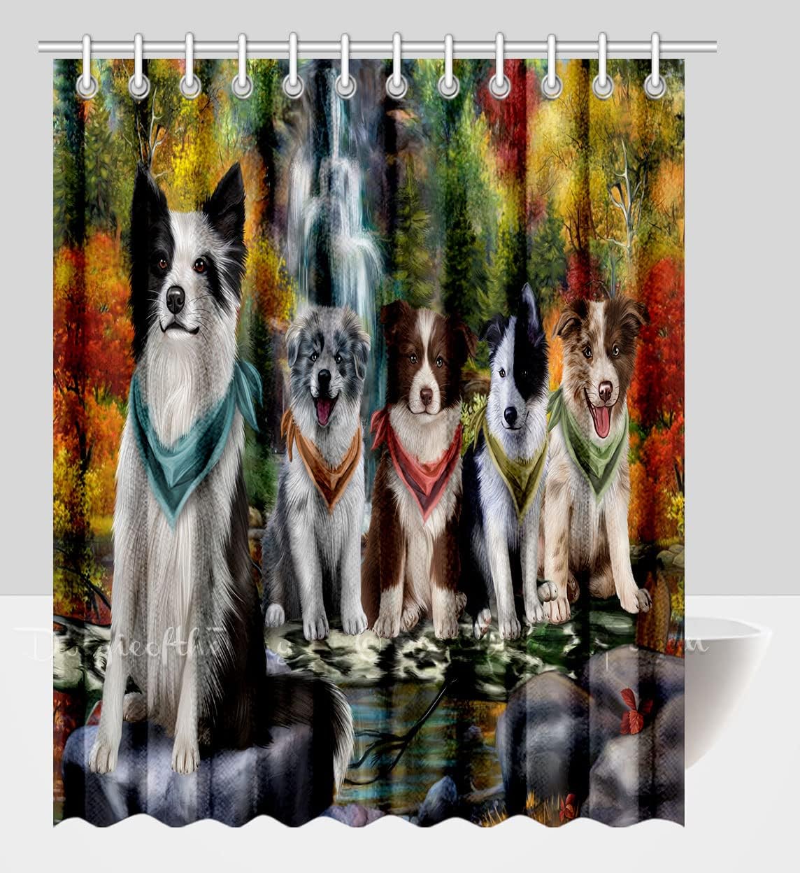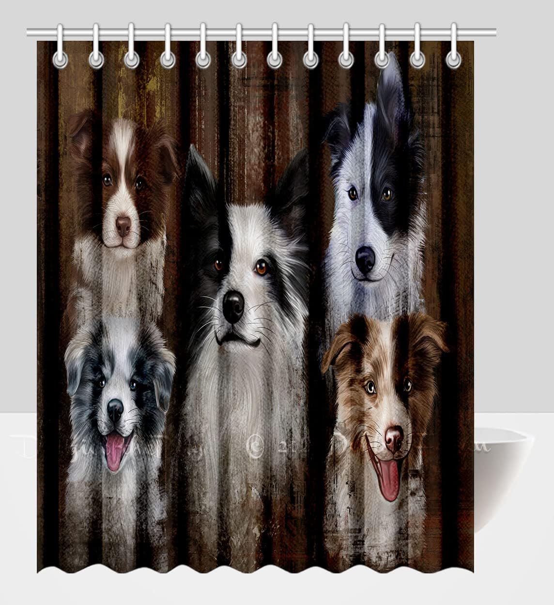Heavy-duty waterproof polyester fabric. Comes with c-shaped curtain hooks. Water repellent to let water glide off and quickly dry. Machine washable in cold water and dries quickly. Do NOT bleach or tumble dry. It drapes beautifully for a clean fresh look in your bathroom and has a soft hand feel. Soft and comfortable to touch, no smell, no-blowing, and withstands moist bathrooms. Mesh-Reinforced header with rust proof grommets can make this shower curtain liner easy to hang and hard to tear. A mesh upper panel lets light in and allows air to circulate, see-through while maintaining privacy, creating a spa shower experience. Made with 100% high quality and eco-friendly durable waterproof polyester fabric. Extra strong fabric and tight hem will avoid shrinkage and deformation. Free of PVC & chlorine, which means no unpleasant plastic smell or unpleasant chemical fumes. Premium quality ensures long-lasting use. We have shower curtains of different sizes, colors and pet themed designs to meet the needs of many families. Meanwhile, please feel free to contact us if you have any quality problems.