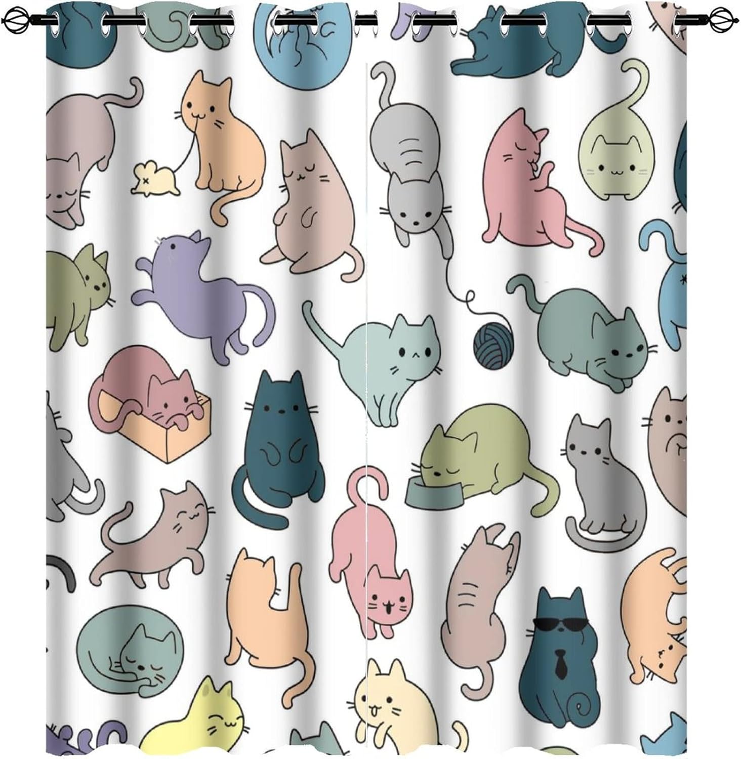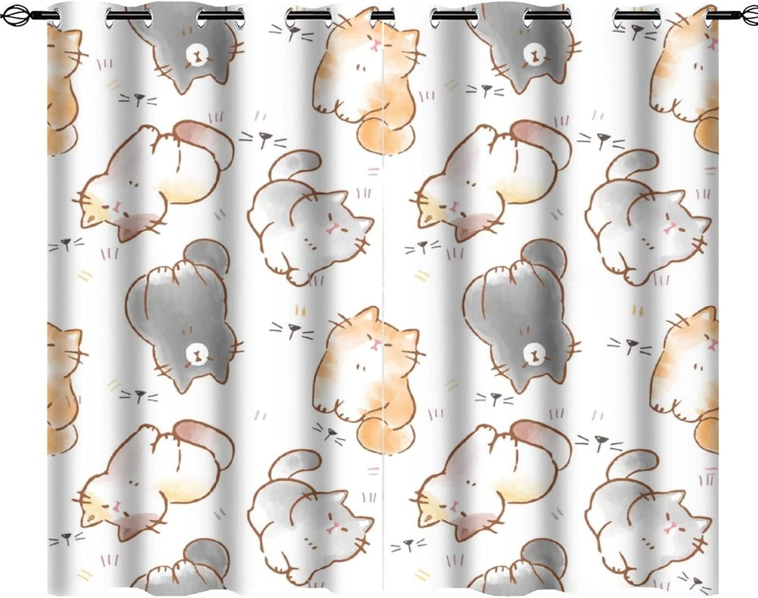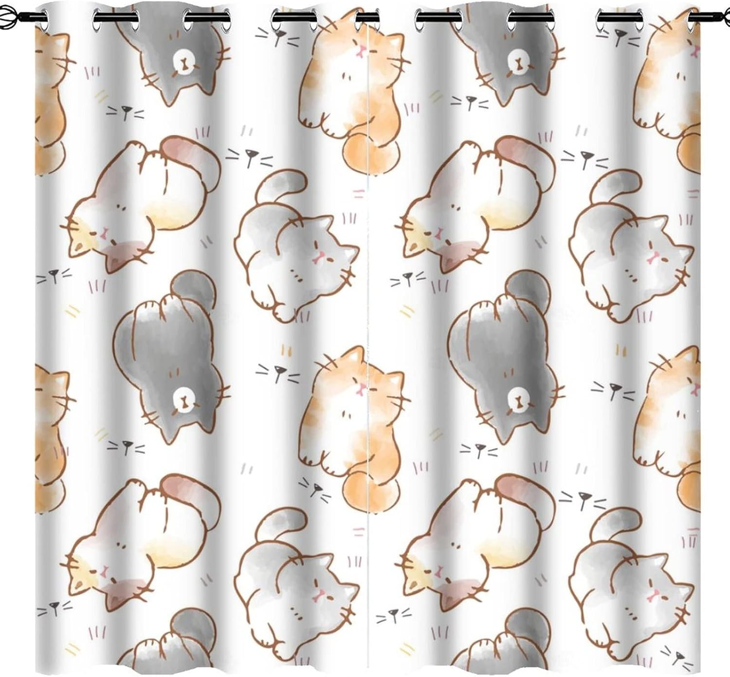INSFBRB Watercolor Cat Lover Patterned Blackout CurtainsThis Watercolor Cat Lover Curtains liven up your indoor or outdoor spaces with a sense of airiness and beauty.Workmanship & Design:Each curtain is machine-made and neatly sewn with no loose threads. Soft, high-quality fabrics ensure long-lasting durability.Beautiful patterns, clever colour matching and advanced printing and dyeing processes for vibrant, fade-free colours.This Cartoon Cute Cat Curtains is suitable for: living rooms, bedrooms, boys' rooms, girls' rooms, nurseries, dining rooms, offices, dormitories, window sills, etc.Care instructions.Machine wash in cold water or hand wash, do not bleach, iron at low temperature.Customer service.24 Hours customer support.