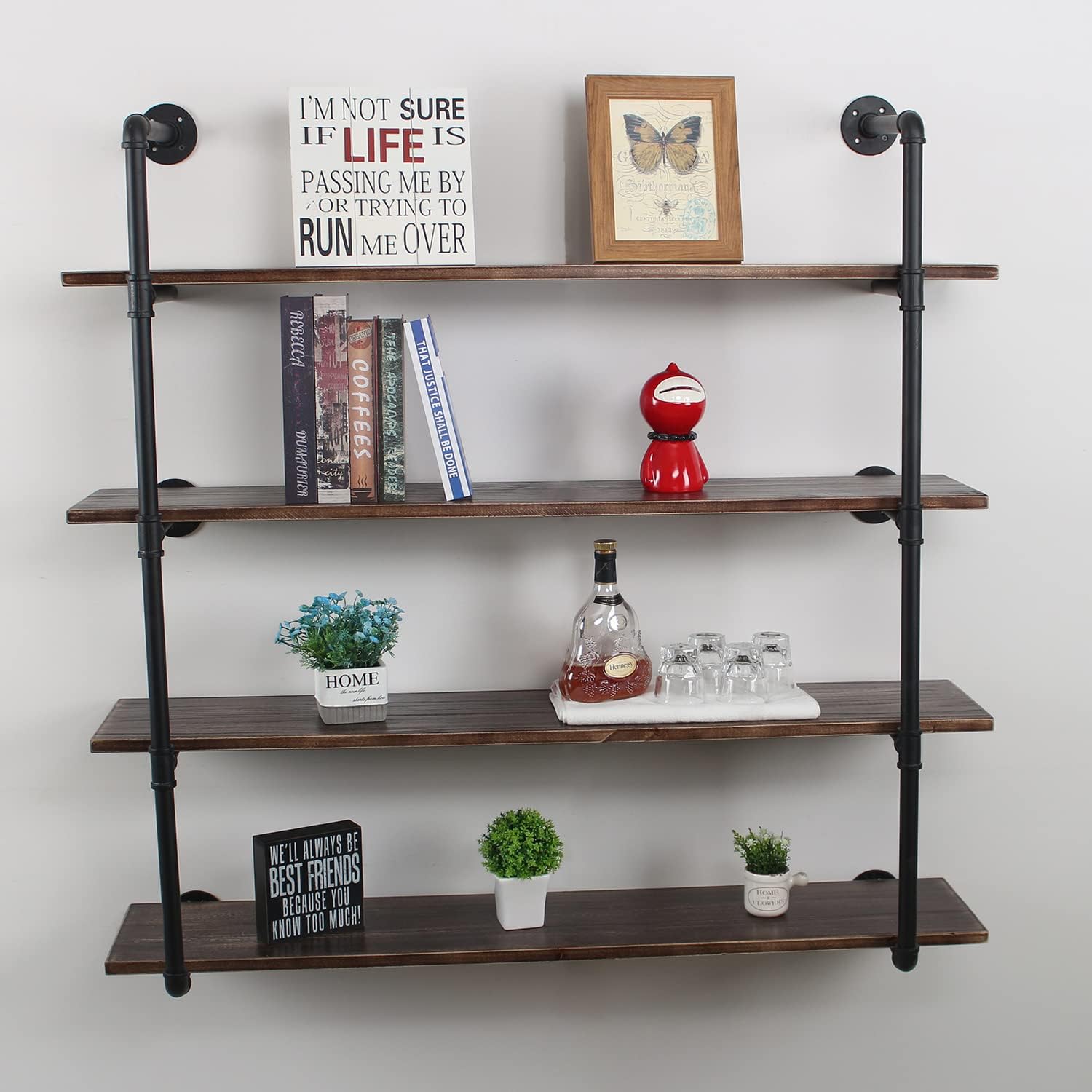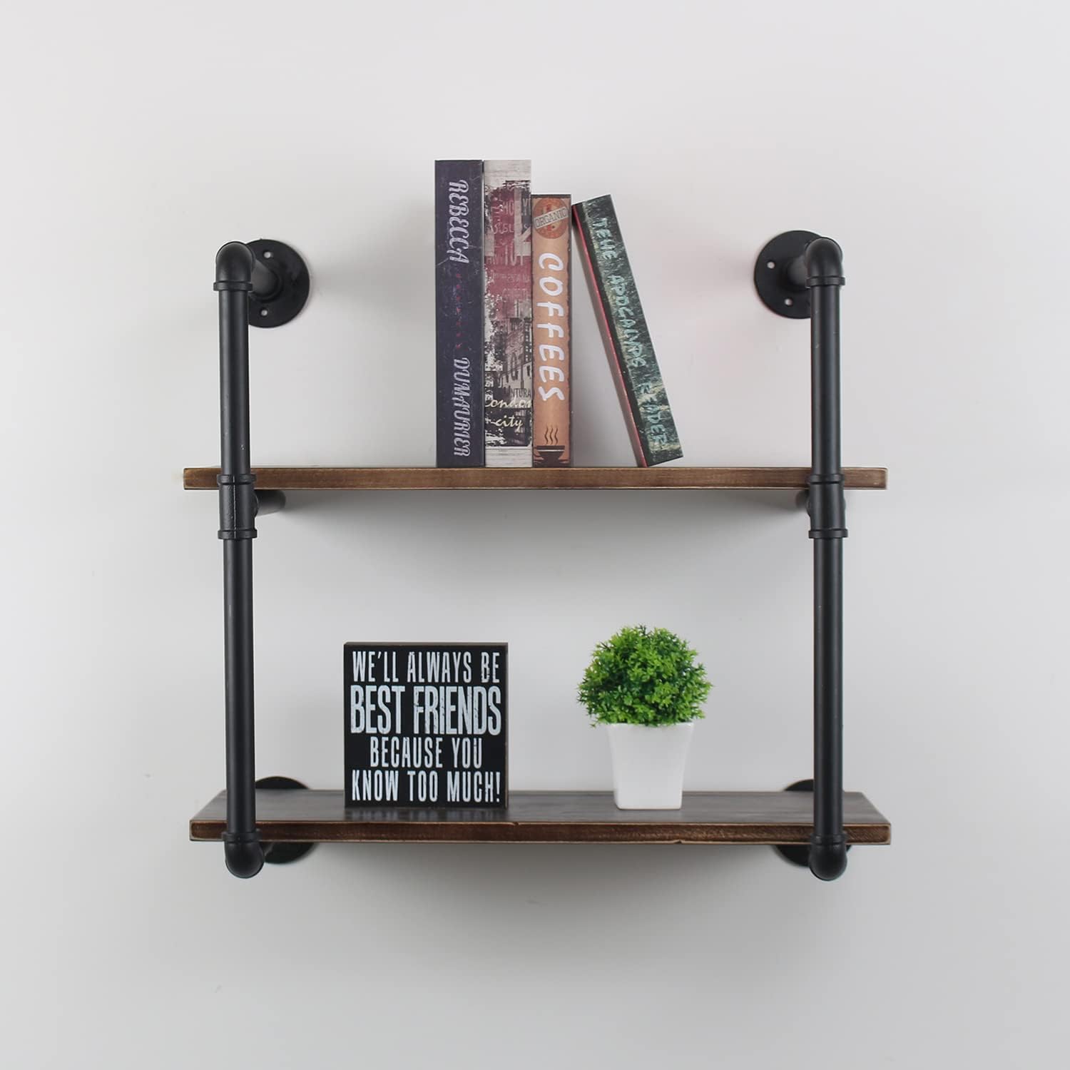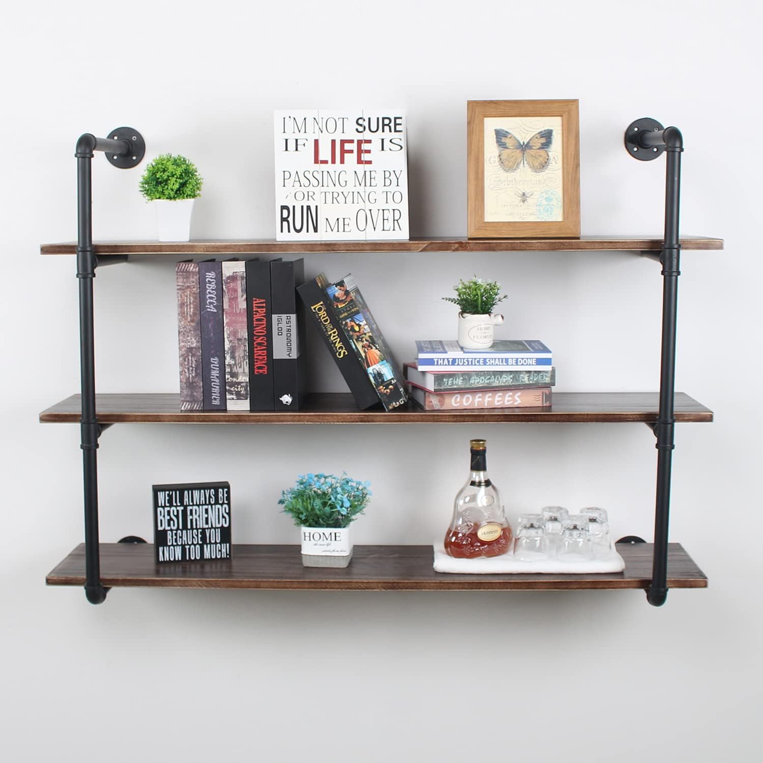 MBQQ Industrial Retro Pipe Shelf 36in 2 Tier Wall Mounted,Rustic Floating Shelves,Farmhouse Kitchen Bar Shelving,Home Decor Book Shelves,DIY Bookshelf Hanging Wall Shelves,Black