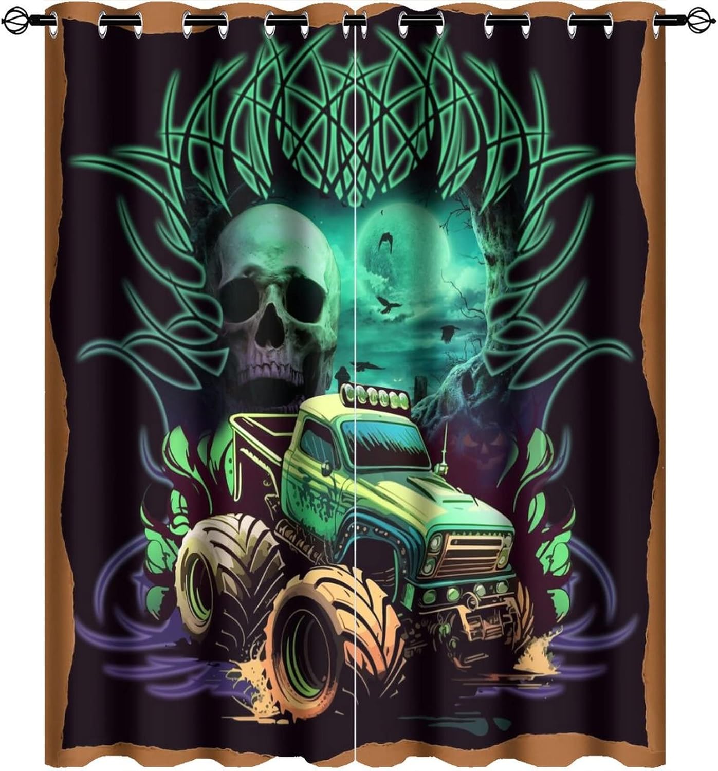 INSFBRB Retro Monster Truck Patterned Blackout CurtainsThis Retro Monster Truck Curtains liven up your indoor or outdoor spaces with a sense of airiness and beauty.Workmanship & Design:Each curtain is machine-made and neatly sewn with no loose threads. Soft, high-quality fabrics ensure long-lasting durability.Beautiful patterns, clever colour matching and advanced printing and dyeing processes for vibrant, fade-free colours.This Cartoon Monster Truck Colorful Graffiti Splash Brick Wall Curtains is suitable for: living rooms, bedrooms, boys' rooms, girls' rooms, nurseries, dining rooms, offices, dormitories, window sills, etc.Care instructions.Machine wash in cold water or hand wash, do not bleach, iron at low temperature.Customer service.24 Hours customer support.