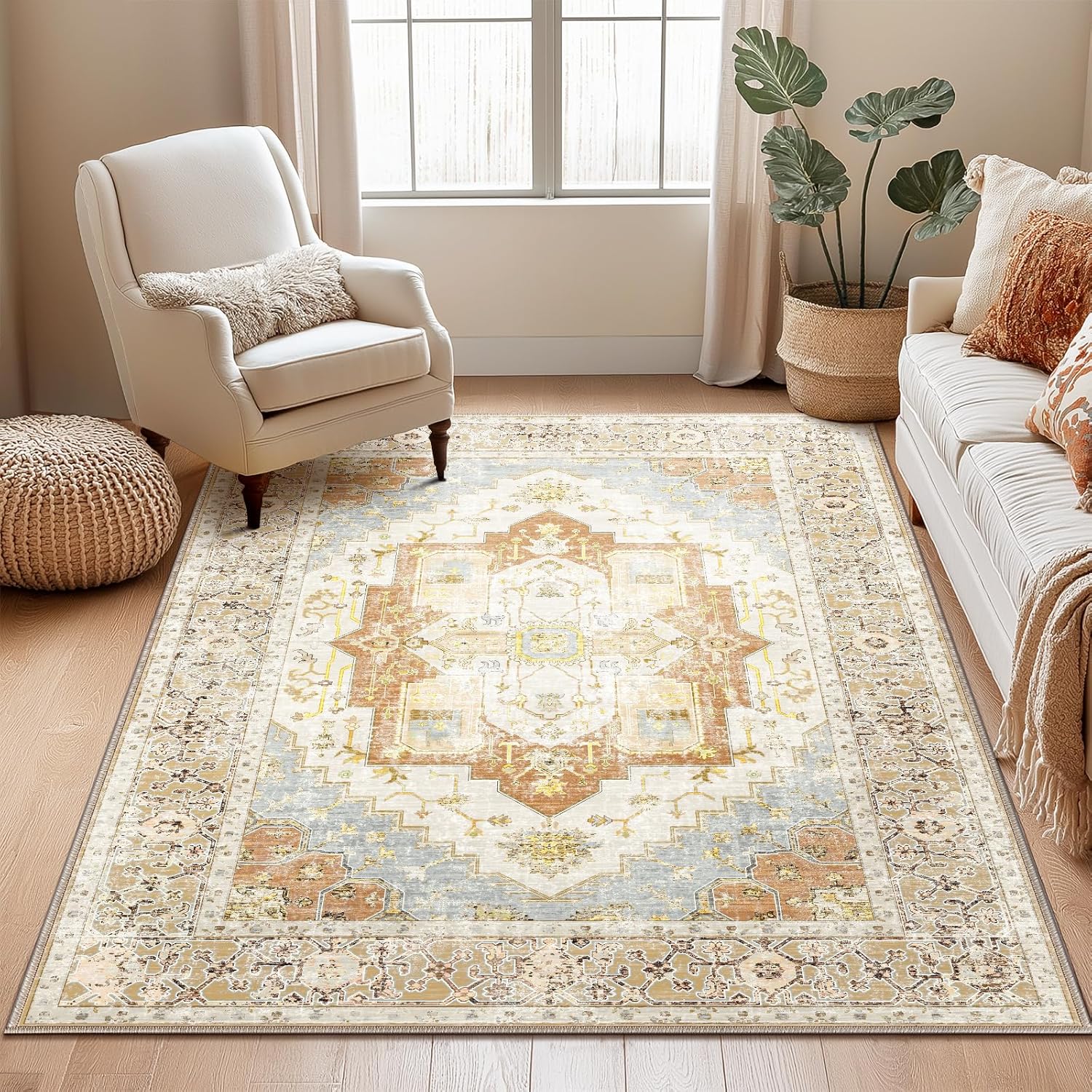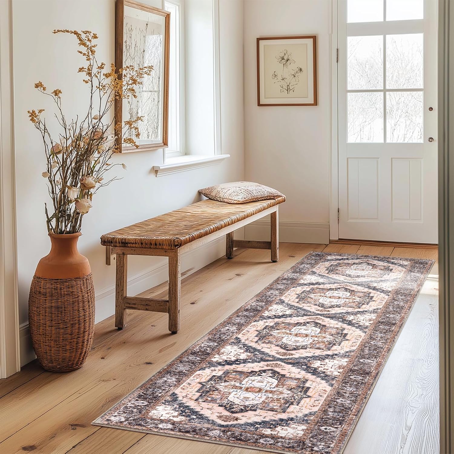 [Product Parameter]: Size: 9'x12' (270 x 360 cm) Color: Pink Material: Polyester Pile Height: Low Pile Construction Type: Machine Made [Product Features]: [STAIN RESISTANT & NON-SHEDDING]: Expertly machine-woven from enhanced synthetic fibers that are stain resistant and have a virtually non-shedding 0.39-inch thick pile. With a low pile height, this floor rug offers comfort without being too bulky for your families and guests. [Non-Slip Rug]: Our indoor doormat made of TPR backing which is safe for everyday indoor high traffic area.The bottom has a very strong grip, which can provide a strong friction force to ensure that you will not slip during use, and can keep the bottom always dry. [EASY MAINTENANCE]: Offering endless convenience for every lifestyle, our mats are safe in the washing machine. Stress-free cleaning includes regular vacuuming and gently blotting out minor stains with a mild detergent or carpet cleaner. [VERSATILE GOOD LOOKS]: Add a fashionable complement to a living room, dining room, entryway, hallway, bathroom, front indoor, kitchen, or bedroom with this versatile indoor area rug. With its classic color scheme and practical size, this area rug makes an attractive addition to any decor. [Product Note]: Rugs may contain temporary creases upon arrival, Flatten out edges by weighing them down with something heavy on each corner. You can also flip the rug upside down. Curved edges should lie flat within a few days after rug is unrolled.