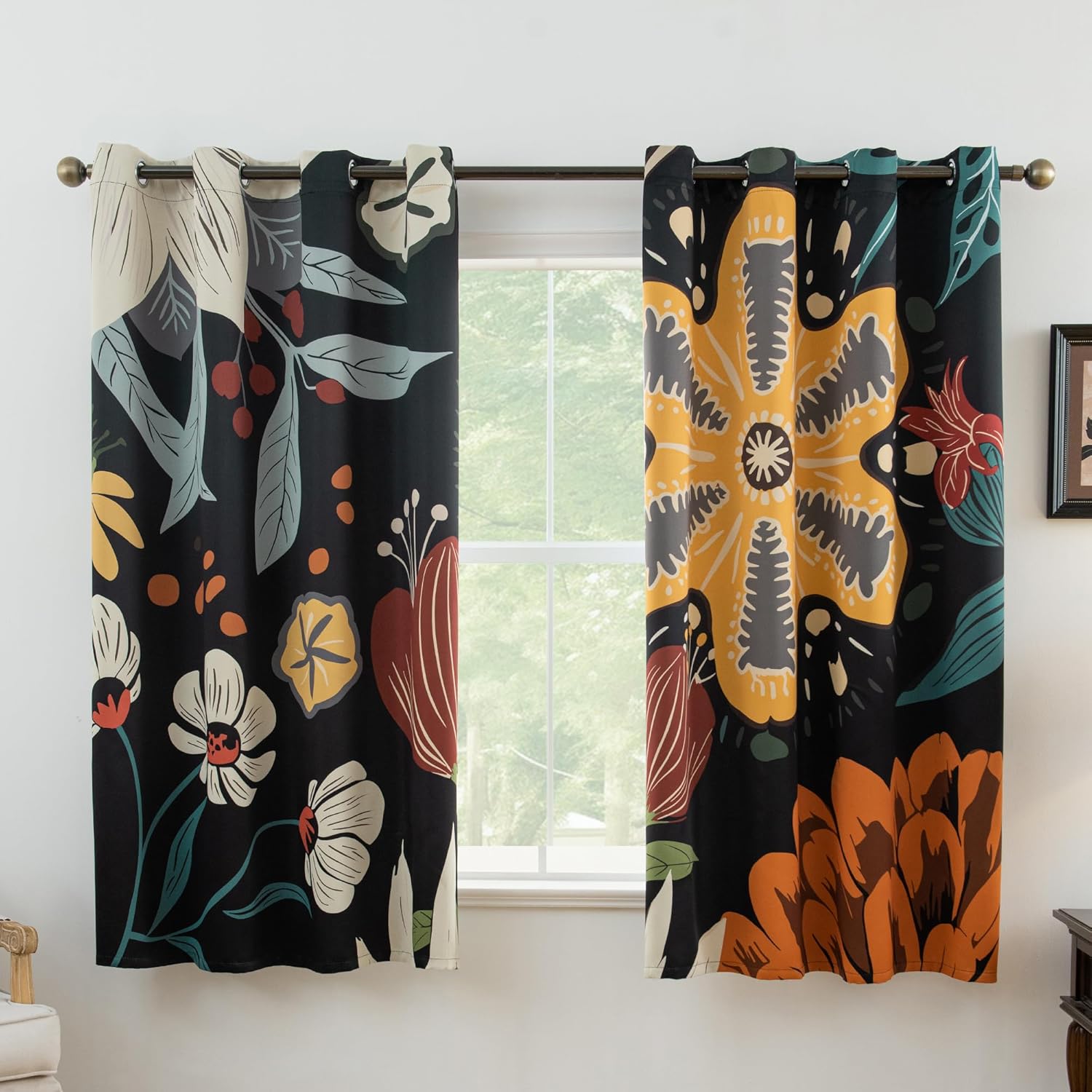 This blackout curtain features a delicate design of blue birds, golden fruits, and lush greenery, bringing the beauty of nature into your home. The hand-painted style adds elegance and charm, making it suitable for various home decor styles. Made with high-quality blackout fabric, these curtains block sunlight and UV rays effectively, reducing outside disturbances. Ideal for those seeking better sleep quality or enhanced indoor privacy. Designed with excellent thermal insulation and noise reduction properties, these curtains help regulate indoor temperature and minimize outside noise, creating a more peaceful living space while saving energy costs. Featuring durable stainless steel grommets, these curtains glide smoothly on most curtain rods, allowing for quick and hassle-free installation while adding a touch of elegance to your space. Perfect for bedrooms, living rooms, study rooms, dining areas, and more, these curtains bring the beauty of nature and elegance into your home. Whether for daily use or festive decoration, they are a stylish and functional choice!