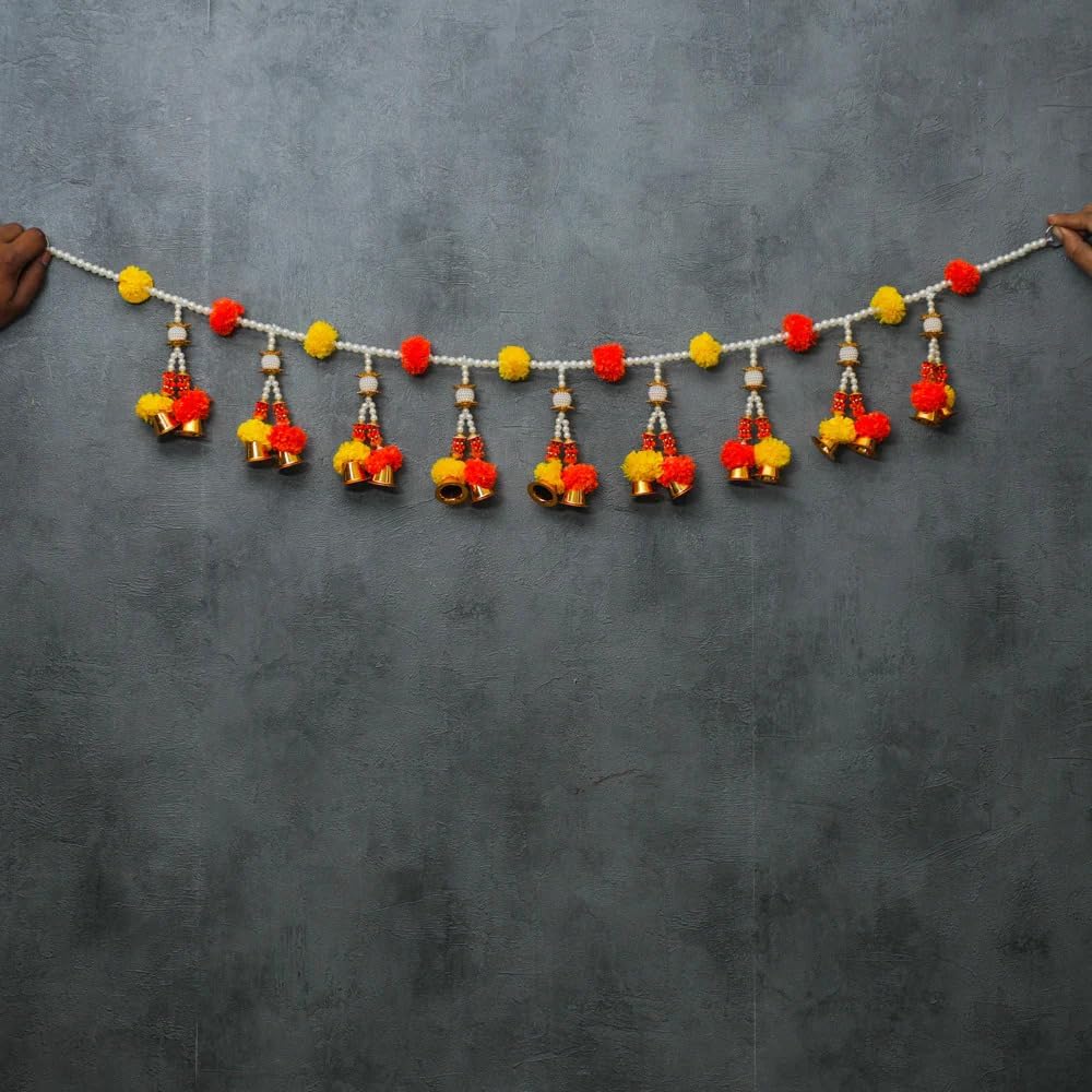 Elevate your living space with the exquisite Pearl & Stone Toran from India, designed for high-end contemporary homes, offices, and temples. Exclusive choice for decorating your home, place of worship, hanging at entrance, living room, bedroom, Window, Desk ,Door Wall. Diwali & Other Festival Decoration. It is best to be used during festivals, griha-pravesham, Housewarming, Diwali, Navratri, spiritual decors, weddings, receptions, inaugurations, cultural events, hotel decorations, shooting etc. This stunning door hanging, also known as Bandarwal or Toran, adds elegance and auspicious charm to any interior. Perfect for festive seasons, it brings good luck and joyful vibes to your home.Crafted with meticulous detail, our Pearl & Stone Toran features intricate designs with artificial pearls, marigold flowers, and ornate varmala patterns adorned with miniature pearls and golden beads. Its vibrant multicolor design and superior craftsmanship make it a standout piece for celebrating Diwali, poojas, housewarmings, parties, and inaugurations.Torans are significant as they greet guests at the entrance, symbolizing warmth and hospitality. Enhancing the charm of your home's entryway, this toran creates a welcoming atmosphere. Easy to hang with built-in loops, it ensures a hassle-free setup, adding festive glamour to any occasion.SPECIFICATION:• Size: 3 Feet• Material: Plastic• Color: Orange & White• Package(s): 1 PieceCelebrate prosperity with our handcrafted Toran! Meticulously woven by skilled artisans, it brings the timeless beauty of Indian tradition to your home. This vibrant tapestry of colors, intricate patterns, and auspicious symbols welcomes good fortune and happiness with every step. Adorn your entryway or share a meaningful gift with this exquisite creation.