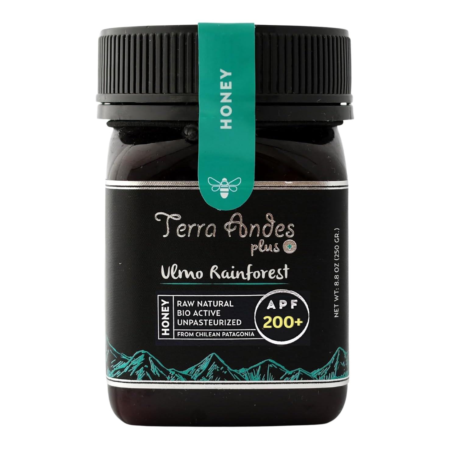 Terra Andes provides the most exclusive selection of pure unprocessed honey along the mountains and forests of Chilean Patagonia, working with hundreds of beekeepers under organic and sustainable practices, focused on delivering only finest quality products to your table. Our honey varieties are tested in German laboratories for guaranteed purity, being 100% traceable from hive to hand.Why is this product for you?This stunning raw honey is a superfood that can make a real difference in your diet. It has the 150+ APF level that may help to protect your body from microorganisms while also supporting your immunity.Unlike Manuka honey, APF Ulmo rainforest honey has a delicious taste to offer. It has a strong floral aroma with intense sweetness and a unique creamy texture, being ideal as a healthy sweetener, for breakfast, cheese, yoghurt, smoothies, or fruit. This unique taste will pamper your taste buds, while its amazing properties give you a healthy energy kick. After tasting this honey, you will never want to use other premium honey instead. Some of the amazing features of this product:Top-quality raw honey from Patagonia; non-polluting sourceRich and intense taste; The perfect company for your breakfast.+150 APF certified; This high certified level helps keep you healthy.Perfect for active people who consume a lot of energy in their daily lives.Thoroughly tested in German labs; 100% Certified qualityEach jar contains 100% raw honey;Can be used for skin conditions, skin and hair masks;Kosher, Halal and non-GMO formula;Monofloral, Unpasteurized and raw honey;Traceable from hive to hand; From the farm to the tableExtracted from the pure, pristine, and unpolluted areas of Patagonia.ENJOY IT YOUR WAY! We recommend consuming a tablespoon every day and every night.