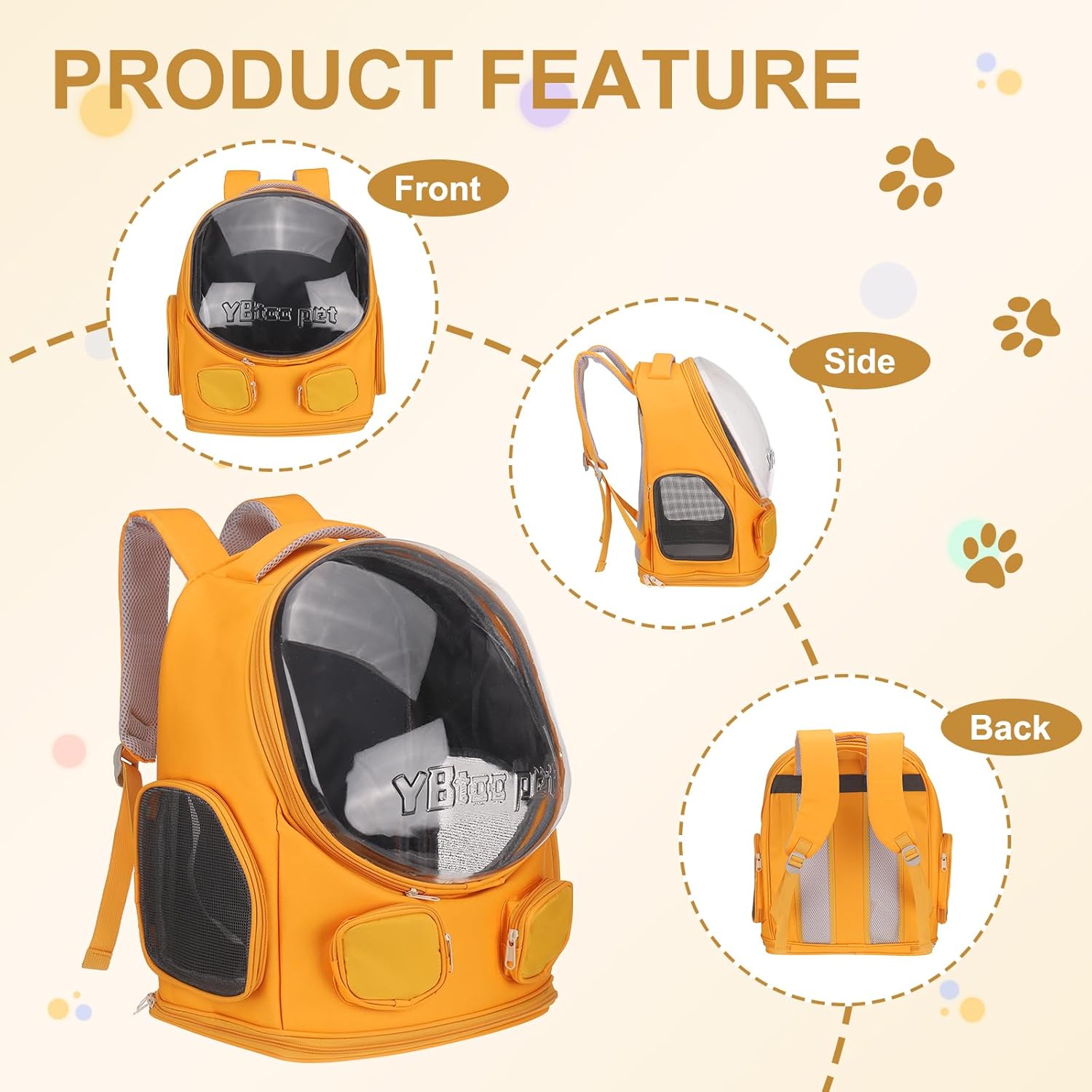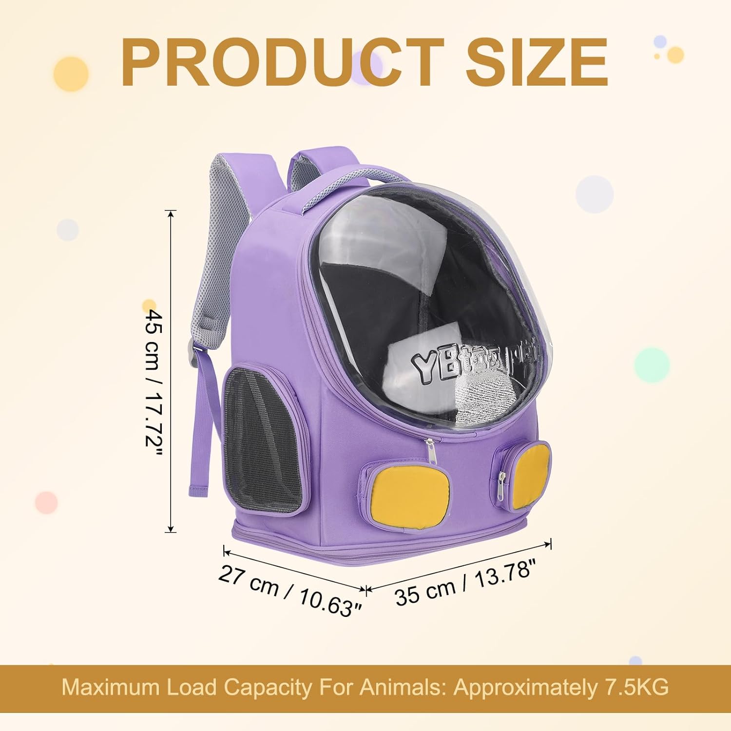 Highlighted Feature:Foldable for easy storage, the pet hiking backpack has dual ventilation and a zippered mesh window to keep your pet cool. Its ergonomic design ensures comfort for you, while the large capacity and extra pockets help store pet supplies conveniently.Quality Materials:The main materials are Oxford cloth and PVC. Oxford cloth offers excellent durability, ensuring the backpack withstands outdoor adventures. PVC offers waterproofing, while the transparent cover allows the owner to check the status of the pet at any time, allowing the pet to keep eye contact with the owner, and increase the sense of security.Intended For:Designed for the owner to take small and medium-sized pet (The weight is about 7.5 kg) for a walk or go to a pet store for beauty care. This carrier bag accommodates a diverse range of animals. It's suitable for various cats, different little dogs varieties, and even small animals like rabbits, guinea pigs, and parrots.The bag suits multiple outdoor activities, such as cycling, hiking, camping, and walking. Product Specifications:Total Size: 35 x 27 x 45 cm / 13.78 x 10.63 x 17.72 inch(L x W x H)Package List: 1Pcs*Pet Backpack CarrierImportant Notes:1. Please ensure the pet carrier backpack is securely fastened before travel. Avoid overloading the backpack with too much weight to maintain stability and comfort for your pet.2. Regularly check the backpack for any wear and tear to ensure safety.
