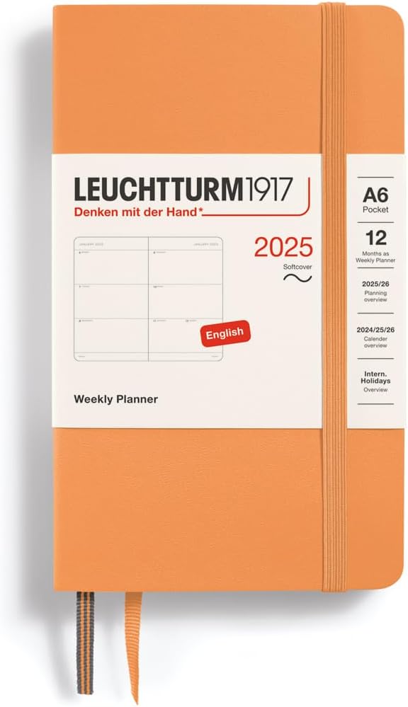 12 months (01 January 2025 - 31 December 2025) as a weekly diary (A6) with soft cover in English.