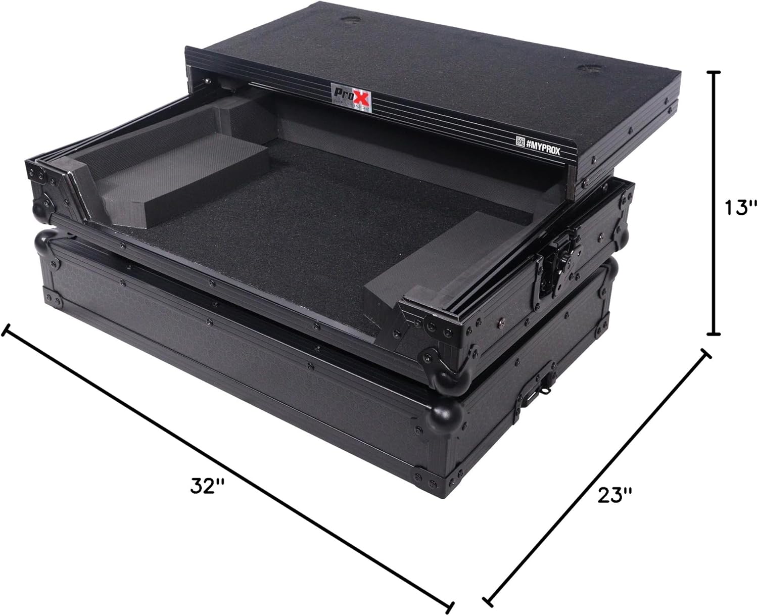 ProX XS-SCLIVE4 LTBL ATA Flight Style Road Case For Denon SC Live 4 DJ Controller with Laptop Shelf 1U Rack Space RGB LED Black Finish. Designed with high-quality materials and workmanship to give you the ultimate security for your digital DJ controller. If you have a passion for your gear and want to always keep it safe, this case will always perform at the highest level. These cases come in a variety of colors and features.All ProX cases are created utilizing CNC technology to assure that consistency is built within strict specifications and tolerances. ProX cases have been a family-owned business since 1984. And we strive to make the best product made to last a lifetime.ProX Gig-Ready™ Series cases are constructed from rugged 3/8" Plywood, reinforced with steel ball corners, spring-loaded recessed padded handles, and twist-locking latches. There is additional space for cables and small accessories at the rear underneath the controller for convenience. The removable front panel allows for easy access to the DJ controller front control knobs, headphones, mic jacks, etc. This DJ Controller case includes our Signature Honeycomb Digital™ Surface Protected lamination. Made to look super-sleek with hexagon grids on all sides of the case in a variety of color options. This helps prevent minor to mild scratches during its lifetime.FeaturesBlack Hardware + Black FinishSliding Laptop Shelf with Cable ThruHeavy-Duty Steel Ball CornersSuper-Sleek Honeycomb Digital™ SurfaceIndustrial Grade Rubber Stopping FeetRecessed Spring-Loaded Rubber HandlesTwist-locking Recessed Butterfly LatchesHigh-Density Foam InteriorReinforced Dual Anchor RivetsProX Limited Lifetime WarrantyExterior Dimensions & Weight33.00"H x 24.00"W x 11.00"L - Weight: 51.00 lbsUPC804589618140