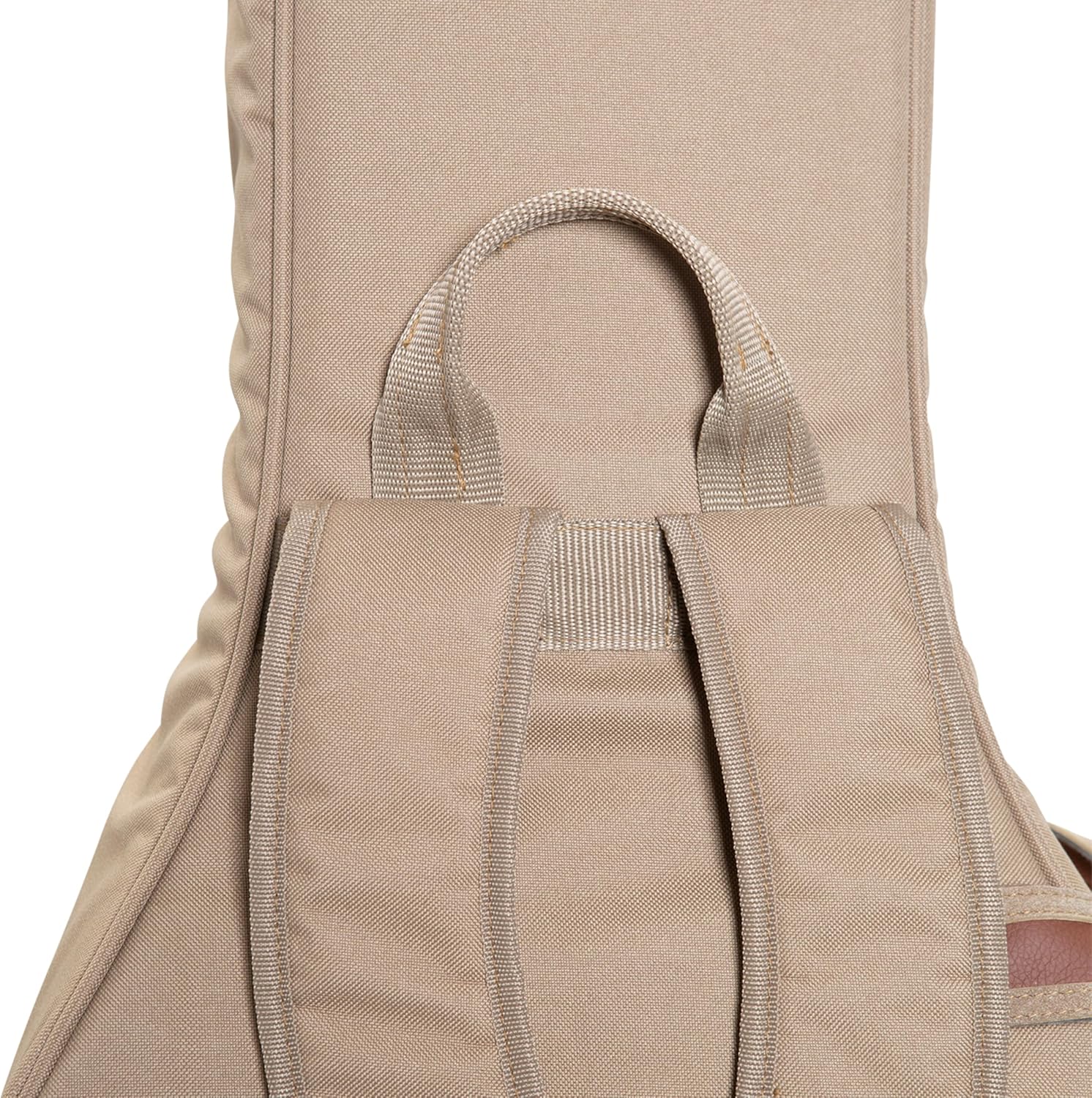 Levy's 200 Series guitar bags These deluxe gig bags provide case-like protection without sacrificing the portability of a bag. Your guitar is guarded by 25Mm-thick, foam-padded walls with plush lining to prevent scratches. The exterior is covered with tan-colored polyester fabric. Brass metal zippers with leather pulls stand out for a stylish appearance. Padded backpack straps can be adjusted to the desired fit, along with a side handle and grab Handle for alternative carrying modes. Easily store a tuner, strings, picks, and other accessories inside the large exterior zipper pocket and smaller front compartment.
