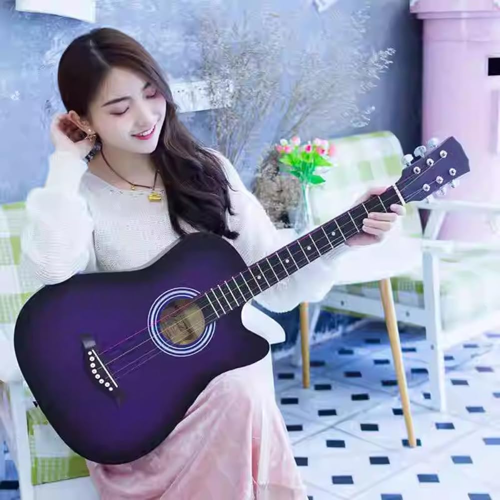 High-quality tuning pegs are crucial for a guitar's quality. Our smooth and easily adjustable pegs maintain precise tuning. It efficiently transfers string vibrations to the soundboard, creating warm, robust, and mellow tones. To learn the instrument, as a beginner on a budget, to make your play more spontaneous.Specifications:Product Name: GuitarsPanel: spruce veneerBack panel: maple veneerFingerboard material: RosewoodProcess: Conventional spray painting Colors: As shown in the pictureSize: 38 inches, 40 inchesSound characteristics: excellent resonance effect, rich bass, warm mid to high notesHand direction: right handedSuitable for: BeginnersPackage:1 x Guitar1 x Bag1 x Tuner1 x Handguard1 x Strap2 x Pick1 x Extra string1 x WipeNote: the guitar will arrive out of tune because the installed strings are new. This is normal. After the guitar has been played for a few weeks, the strings will begin to stretch and will require less tuning while playing.