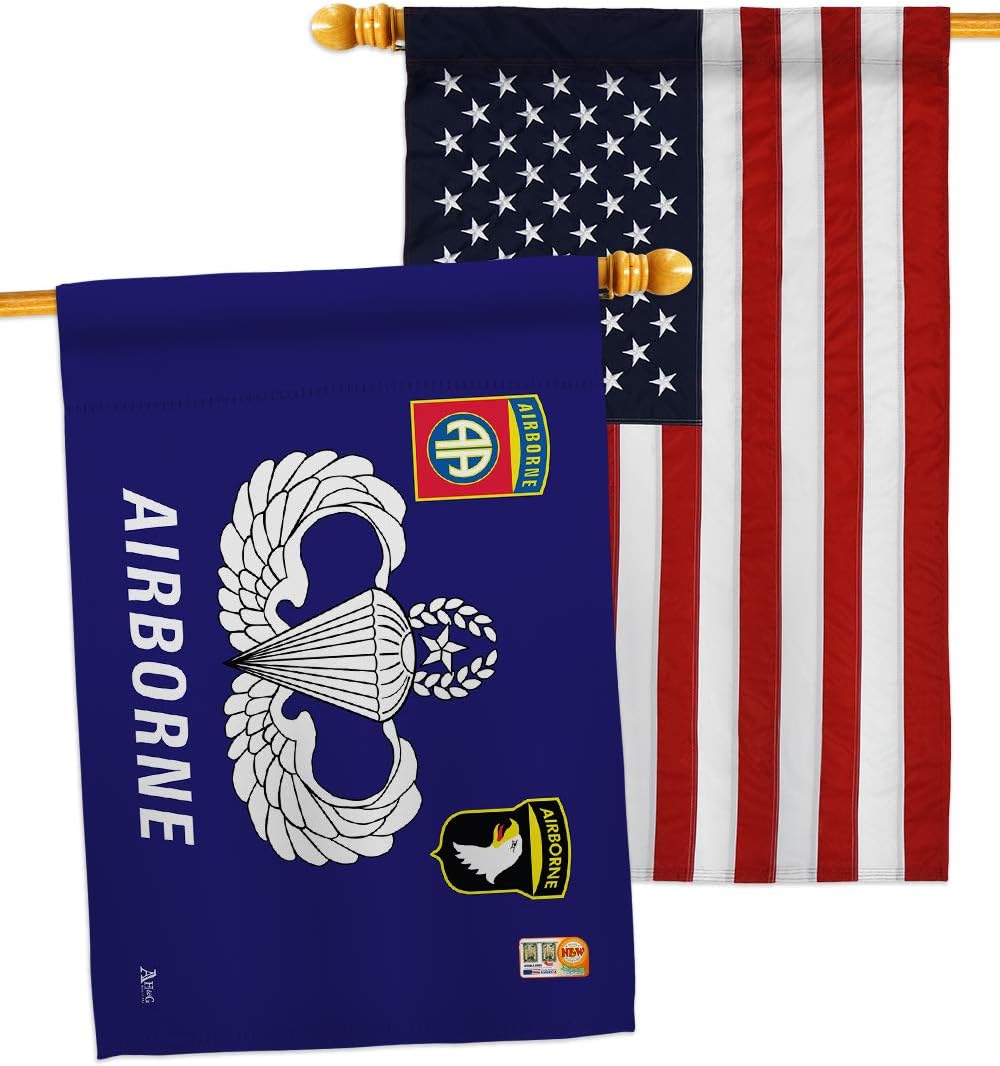 Military Beautiful Large House Flags Pack - 2 SetsAmericana Home & Garden have variety of House Flags Pack for all occasions. Uniquely design for hanging indoor or outdoor use. We are committed to offering you exceptional values. Our customers enjoy displaying our House Flags Pack for longer periods. Specification: Theme: Military Size: House Flags Pack 28" x 40" Print: Double-Sided Readable: Readable Both Sides Material: Weather Resistant 3 Layers Blockout Stitching: Double Stitched Display: Vertical Hang Type: Sleeve Artist: © Jake Bosa Special Features: Origin: Made In USAPackage Include: 2 pc x House Flag 28" x 40" Package Decorative FlagsFor more than a decade, we’ve been dedicated to manufacturing flags with no comparison in quality and beautiful designs. Our flags are made with our Pro Guard material that is soft to the touch and designs can be read correctly on the flag. A feature that our customers will love. We are committed to using eco-friendly inks that won’t leave a foot print in our environment. MPN: AA-MI-HP-140302-IP-BOAE-D-US20-AG 40302 42302
