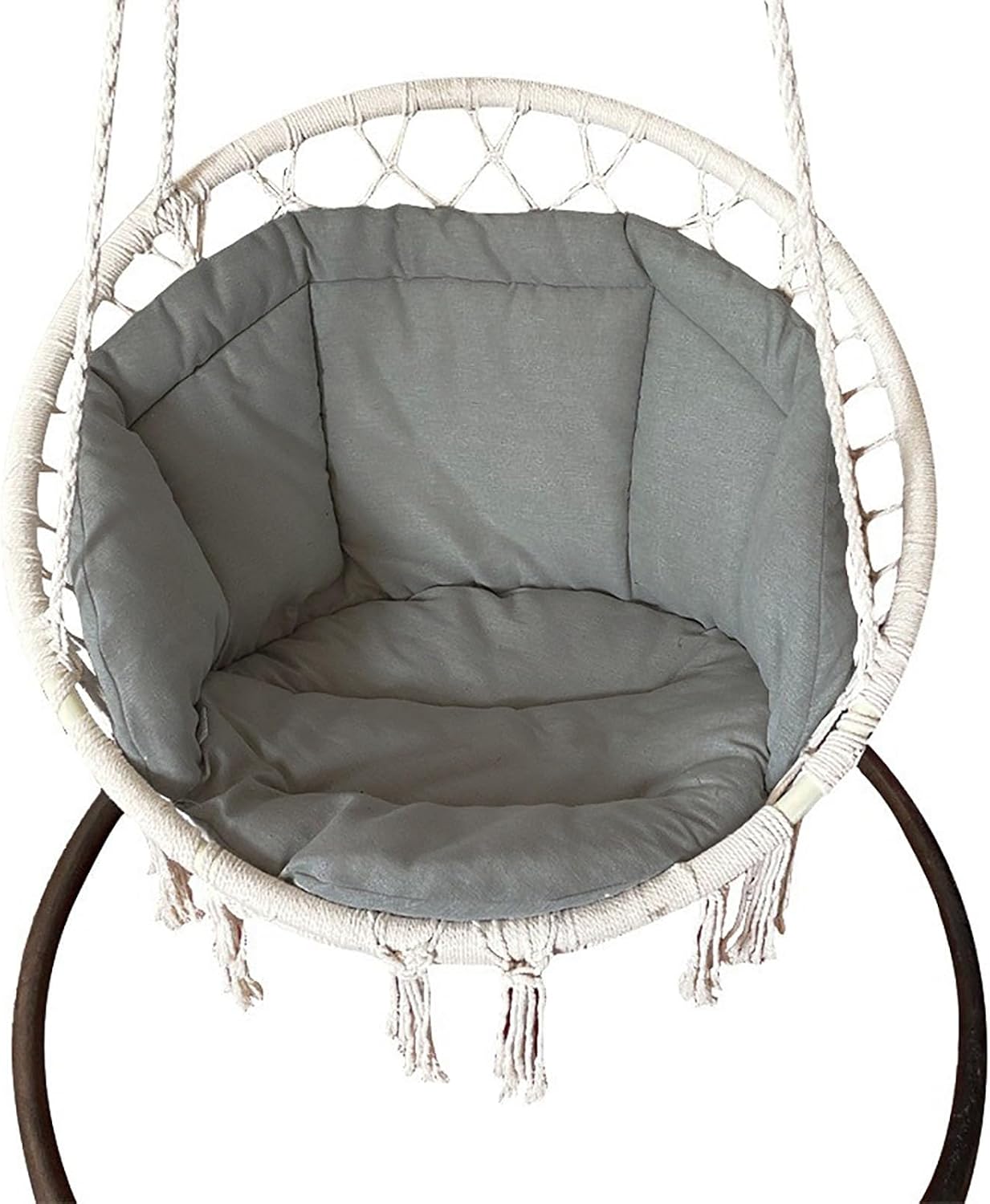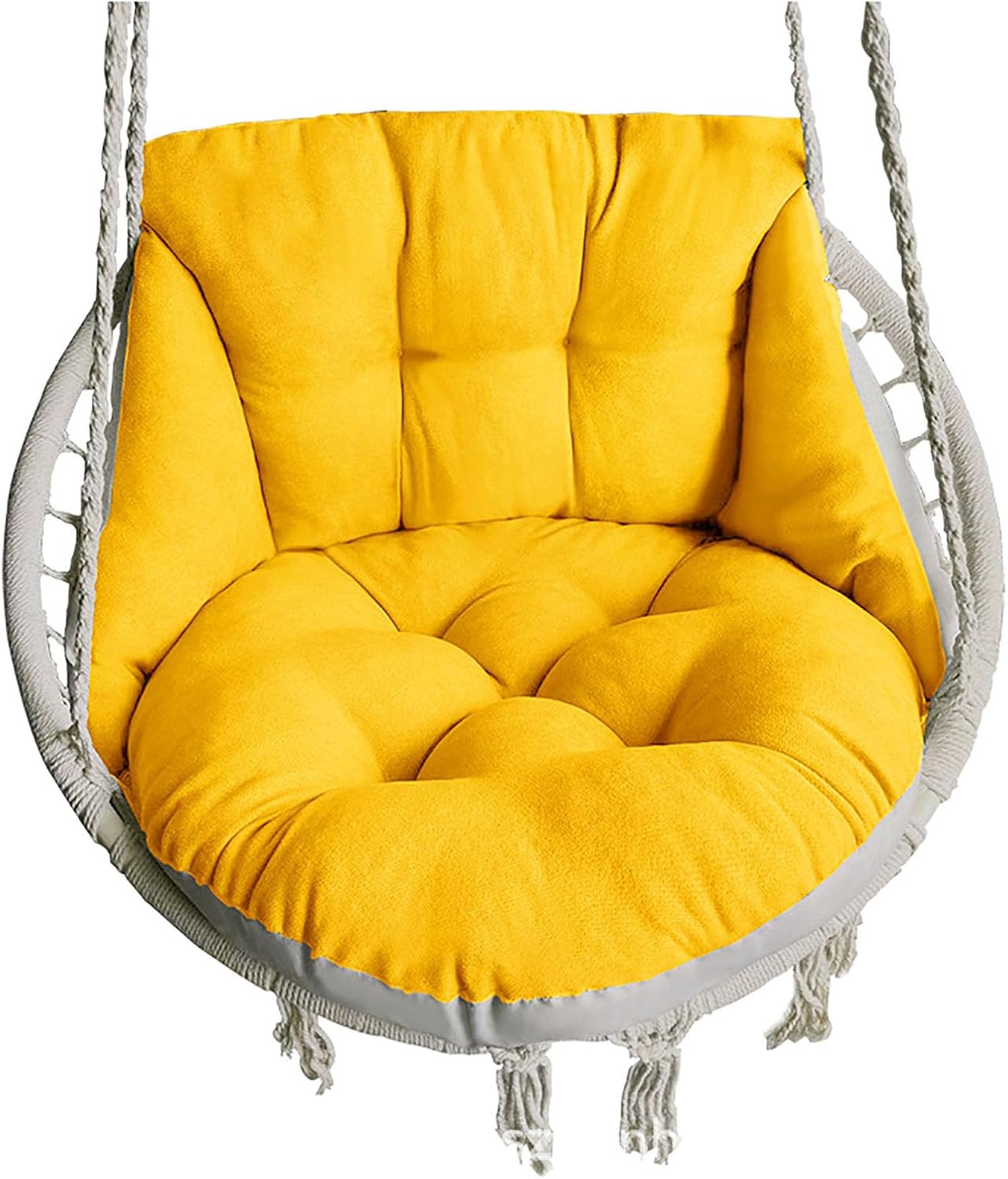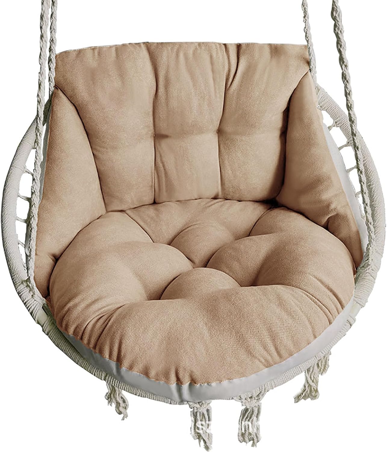 Product Description: Introducing the Swing Chair Replacement Cushion, a perfect accessory to enhance your relaxation experience. This beautifully designed cushion combines comfort and style, adding a touch of bohemian charm to your hanging hammock setup. Crafted with attention to detail, this cushion is a must-have for anyone seeking a cozy and stylish seating option.Product Features:It offers a comfortable seating experience, allowing you to unwind and enjoy your leisure time in style.It offers a cushioned surface that gently cradles your body, allowing you to relax for extended periods.Whether you have a hanging chair or a hammock swing, this cushion easily attaches, offering an extra layer of comfort wherever you choose to relax. It is designed to withstand regular wear and tear, making it a reliable choice for hammock enthusiasts seeking quality and longevity.Precautions:Ensure the cushion is securely attached to the hanging hammock before use to prevent any accidents or falls.Avoid exposing the cushion to harsh weather conditions for prolonged periods, as it may affect its longevity and appearance.Take care when removing or attaching the cushion to prevent any damage to the cushion or the hanging hammock.Functions:Versatile and Easy to Use: Compatible with various hanging hammocks, this cushion can be effortlessly attached or removed, providing comfort wherever you choose to relax.